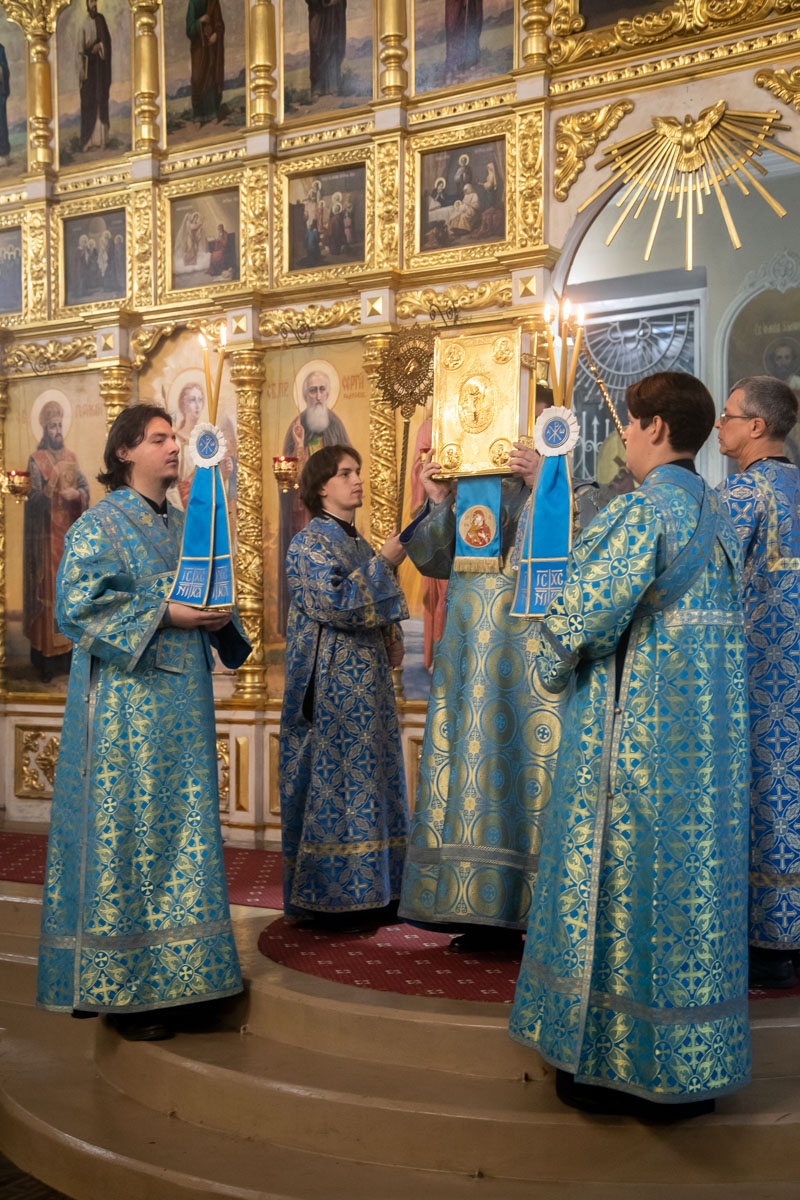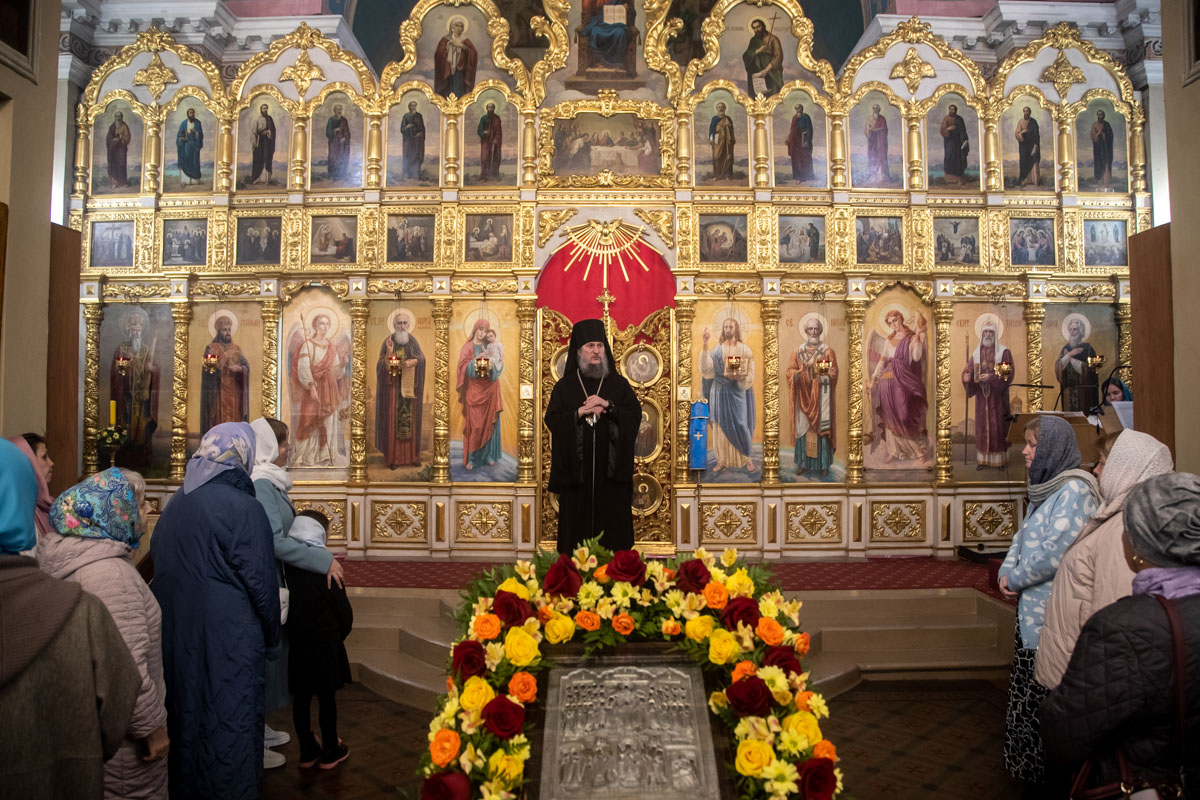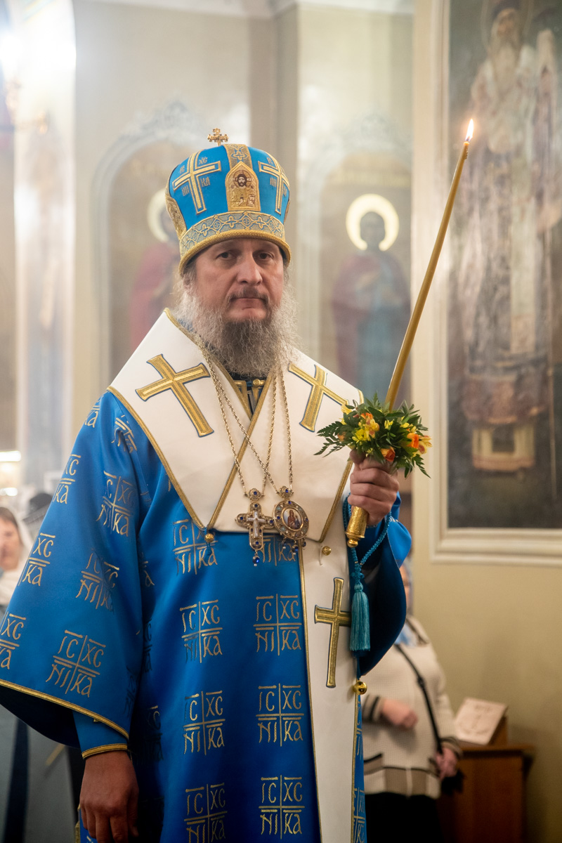 Его Преосвященству сослужили: ключарь собора иерей Виктор Тихонов, иерей Николай Андриевский, иерей Виталий Гарабов, иерей Павел Силайчев, диакон Алексий Ведерников, диакон Иоанн Дунаев.
