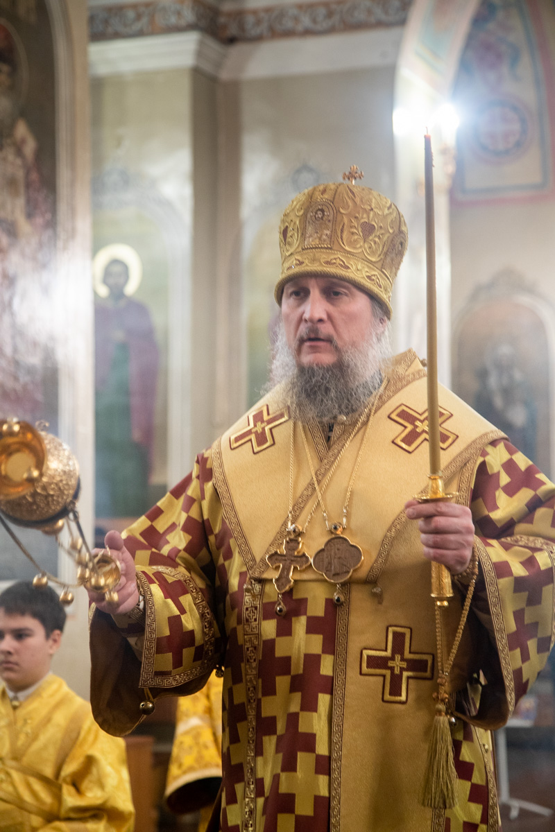 Его Преосвященству сослужили: ключарь собора иерей Виктор Тихонов, иерей Николай Андриевский, иерей Виталий Гарабов, иерей Даниил Щербаков, иерей Павел Силайчев,  диакон Алексий Ведерников.