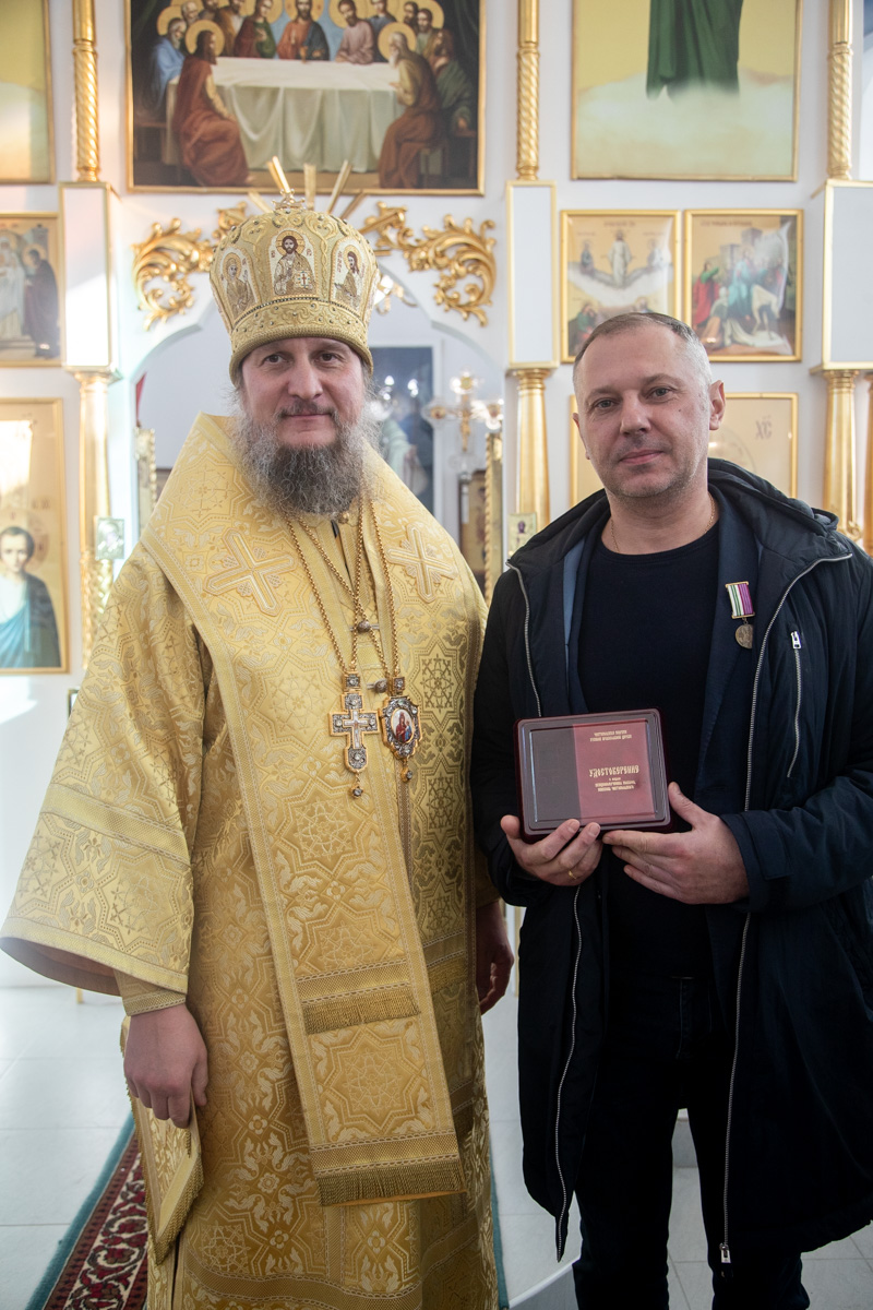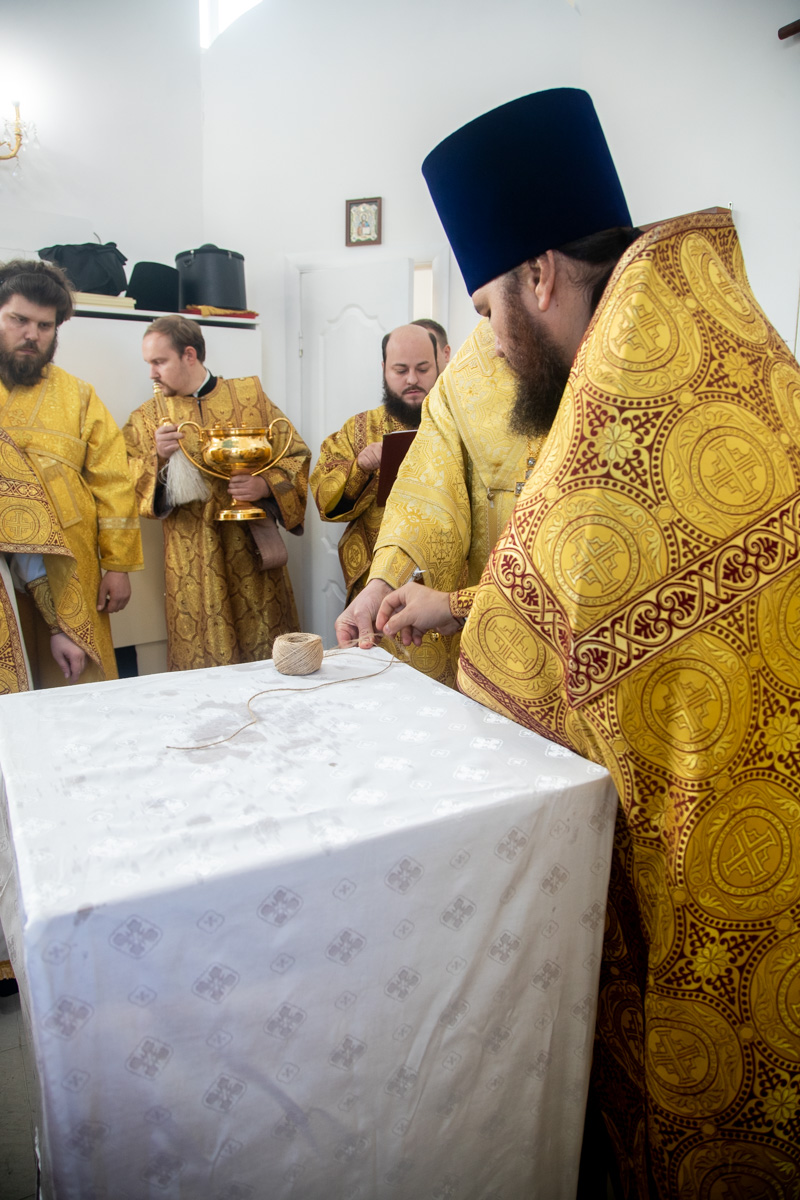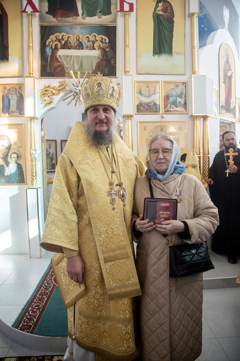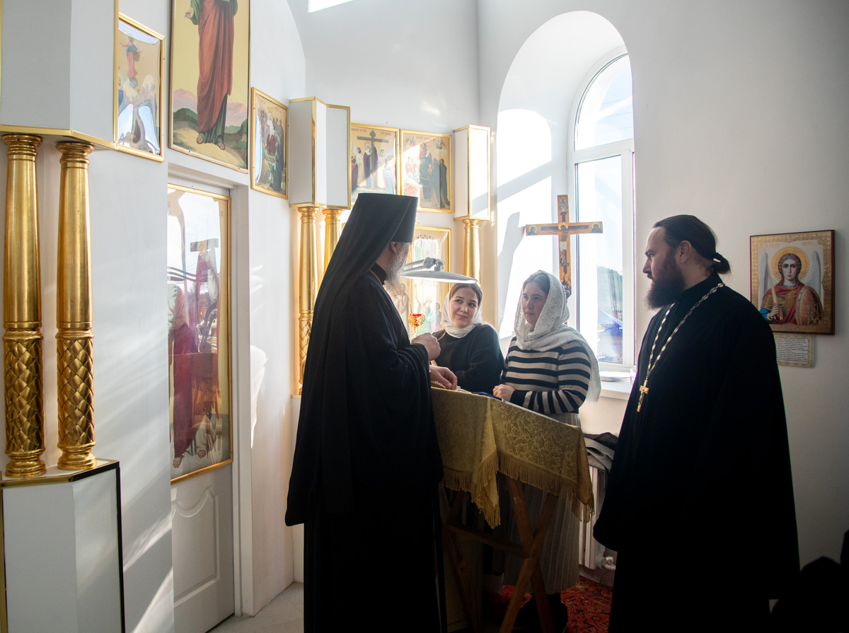 Его Преосвященству сослужили: секретарь епархиального управления иерей Виктор Тихонов, протоиерей Герман Чурашов, настоятель храма иерей Сергий Ярушев, иерей Димитрий Яковлев, иеродиакон Мефодий (Копьев), диакон Алексий Ведерников.