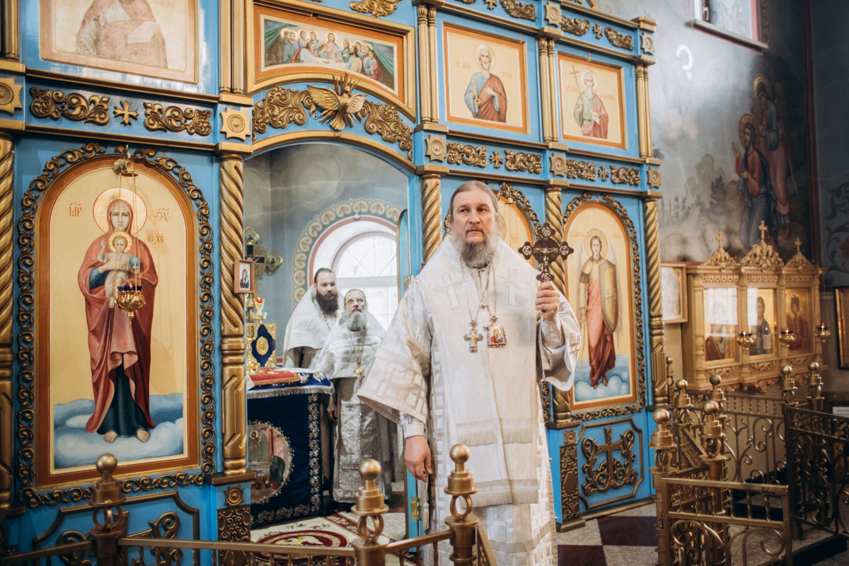Его Преосвященству сослужили:  настоятель храма протоиерей Андрей Рыбочкин, иерей Александр Артемьев, диакон Алексий Ведерников.