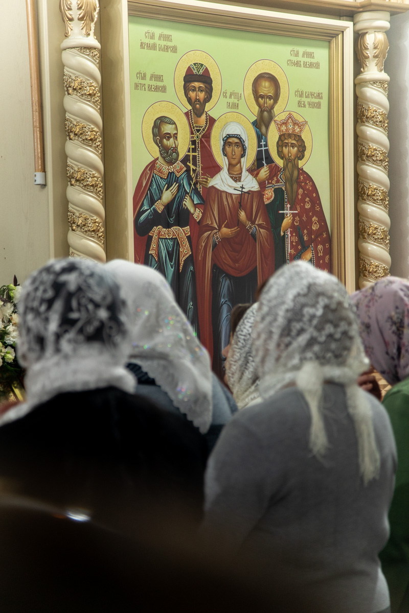 Его Преосвященству сослужили: благочинный Спасского округа Иерей Николай Рыбочкин, настоятель храма иерей Сергий Павлов, иерей Деонисий Колесников, иерей Александр Шмагин,иерей Сергий Столяров, иерей Димитрий Яковлев, диакон Алексий Ведерников, диакон Авдий Зарипов, диакон Димитрий Шувалов.