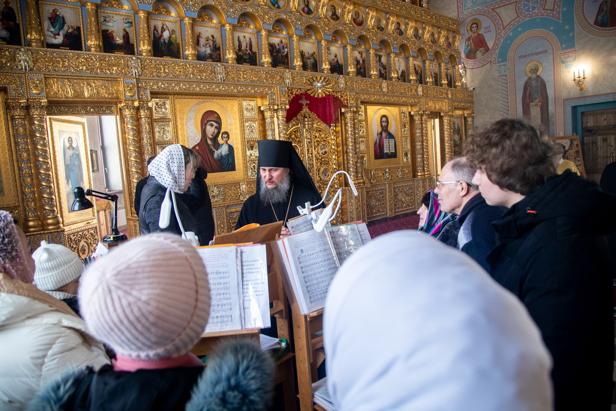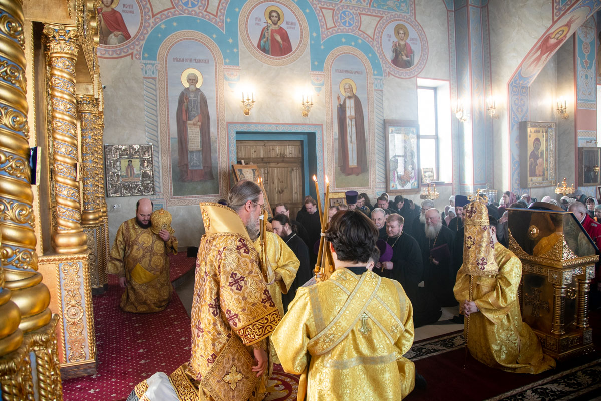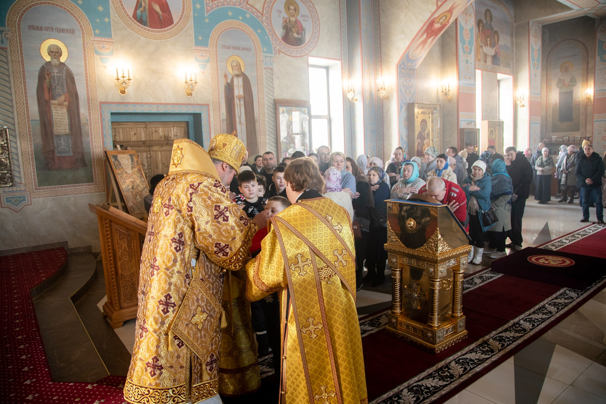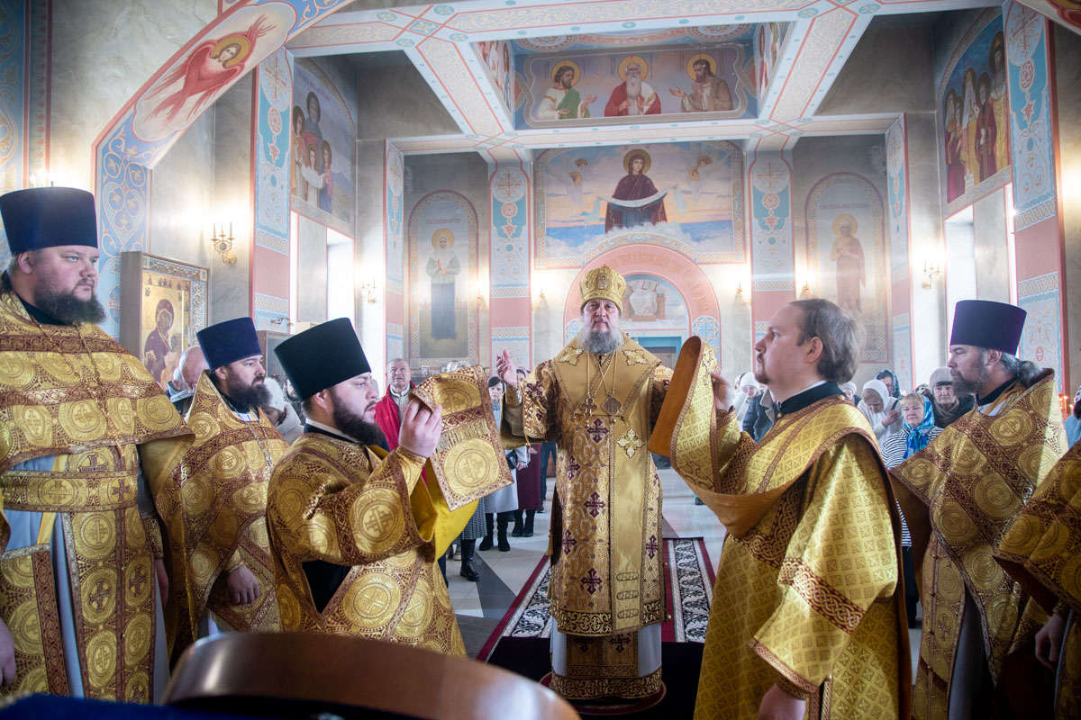 22 февраля, в Неделю сыропустную, воспоминание Адамова изгнания, обретение мощей святителя Тихона, Патриарха Московского и всея Руси, епископ Чистопольский и Нижнекамский Пахомий совершил Литургию в храме Рождества Христова г. Нижнекамска.
