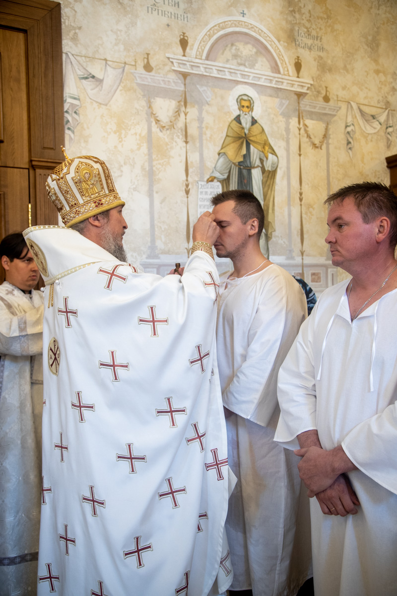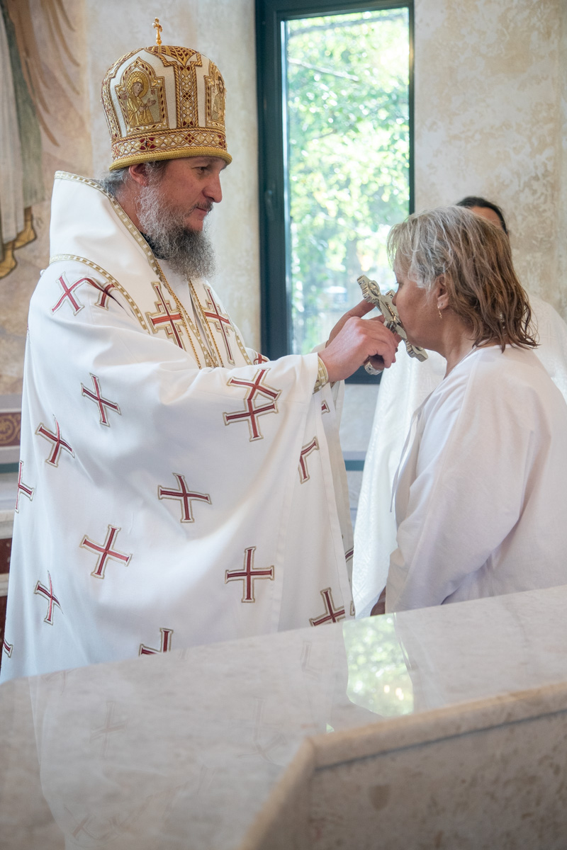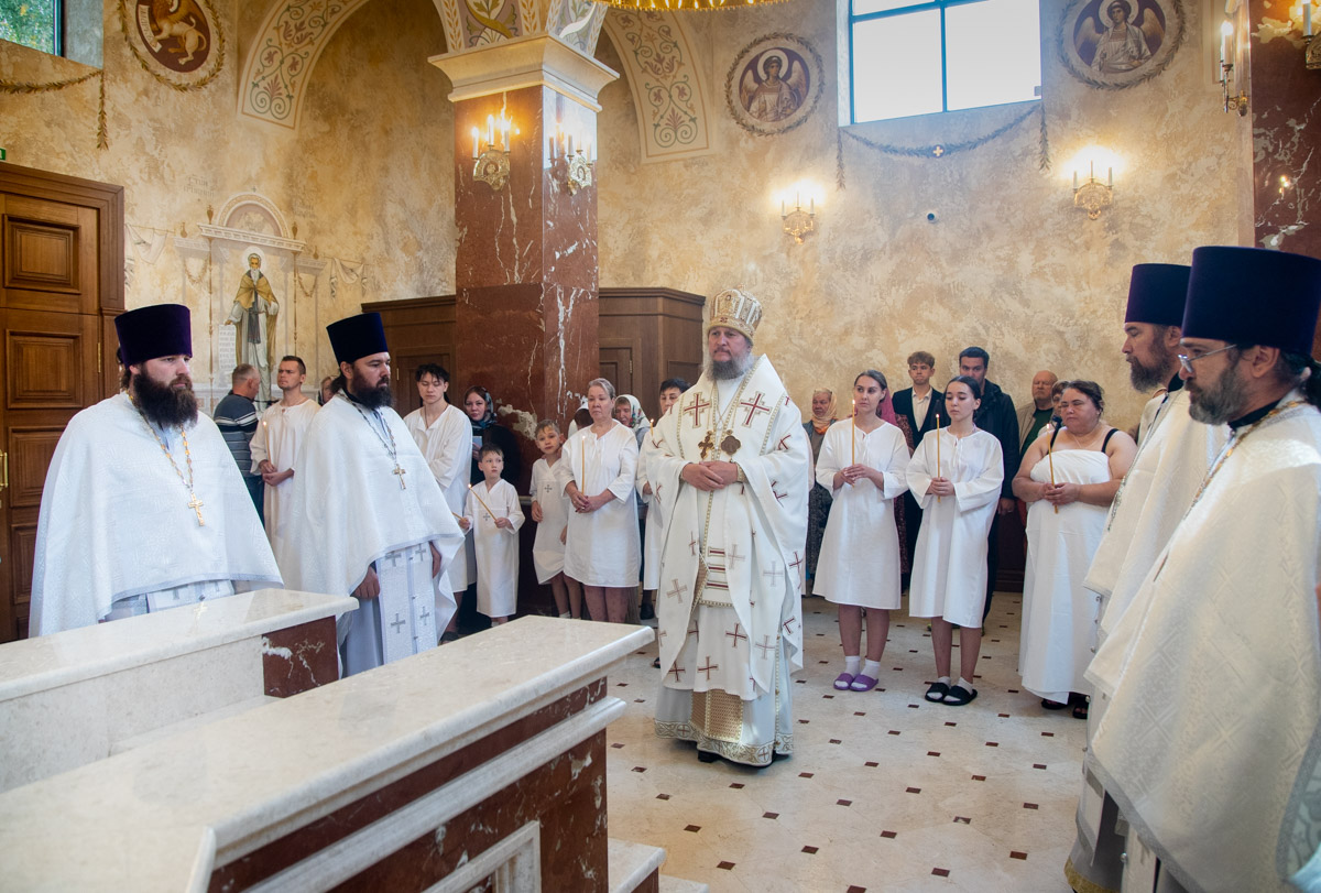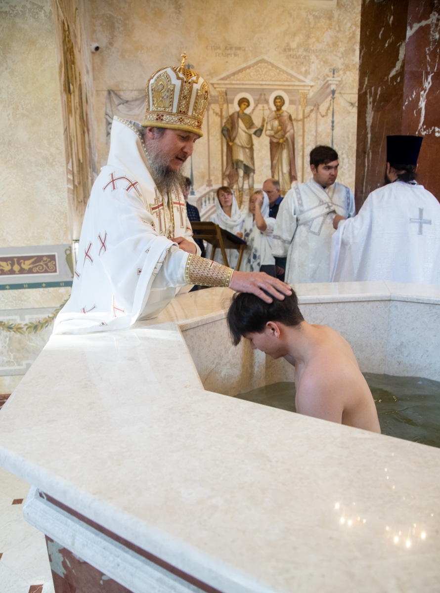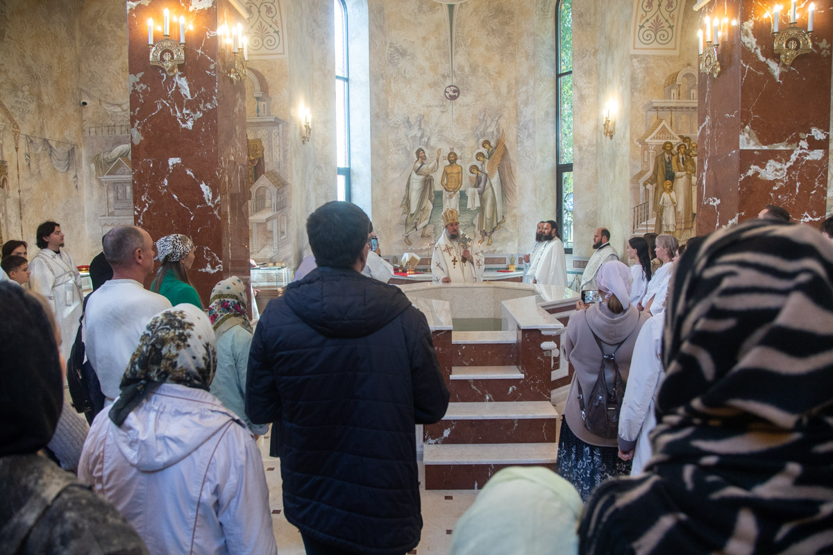 После Крещения новопросвещенные вслед за архипастырем проследовали в храм Казанской иконы Божией Матери, где приняли участие в Литургии и причастились Святых Христовых Таин. Владыка поздравил новокрещенных, вручил им свидетельства и памятные подарки.