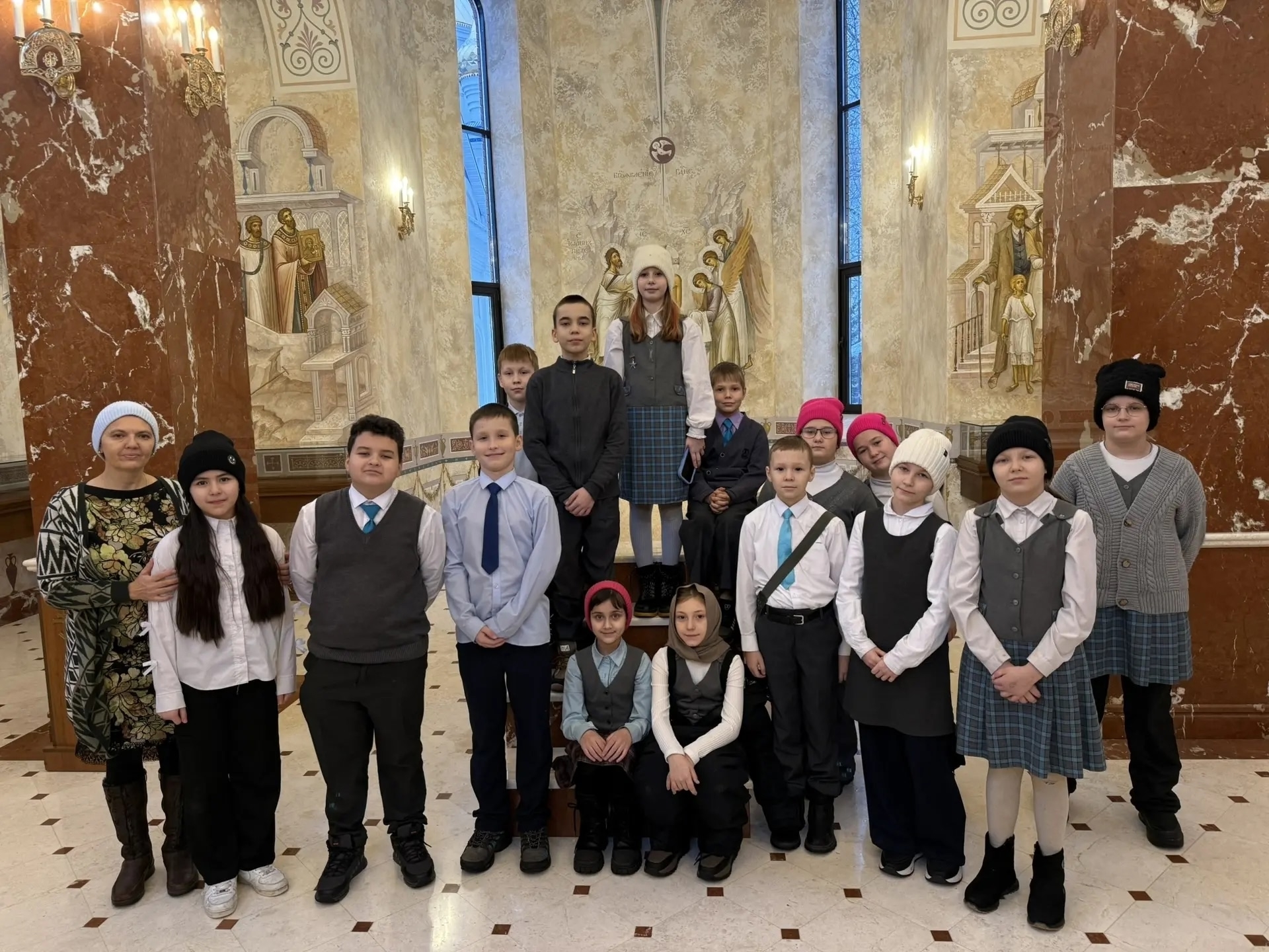 Архиерейское подворье праведного Иоанна Кронштадтского в п. Красный Ключ посетили 12 декабря ученики 5 «А» класса средней школы №12 г. Нижнекамска. Их цель – познакомиться с уникальными росписями крещального храма во имя блаженной Ксении Петербуржской и больше узнать о православной иконописи в целом.