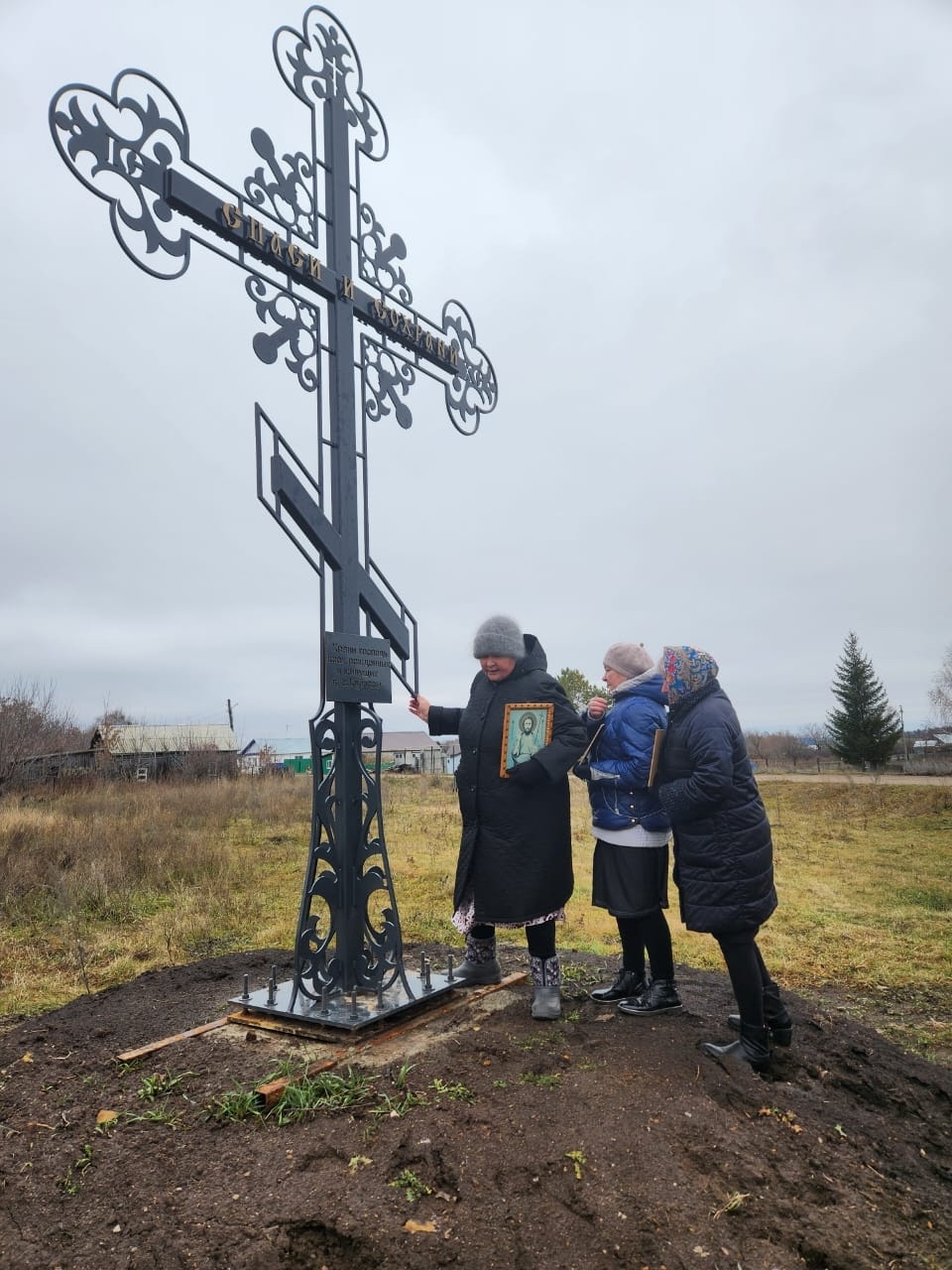 После богослужения духовенство и верующие прошли крестным ходом до поклонного креста, где отслужили молебен на его освящение. Отец Симеон окропил крест и всех присутствующих, а также сказал напутственное слово.