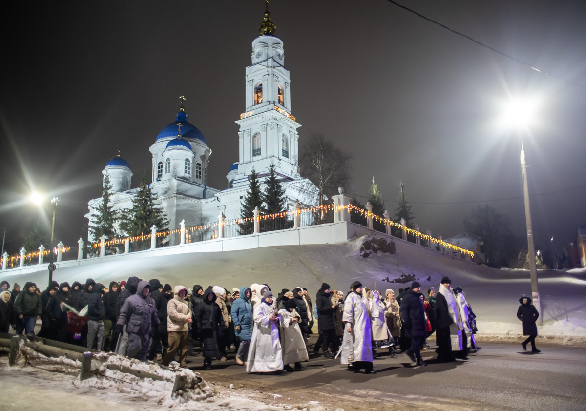Шествие, посвящённое Крещению Господа Иисуса Христа, состоялось в Чистополе в ночь с 18 на 19 января. Его возглавил епископ Чистопольский и Нижнекамский Пахомий. Священнослужители и миряне прошли от Свято-Никольского кафедрального собора, где перед началом крестного хода совершили молебен, к набережной Камы.