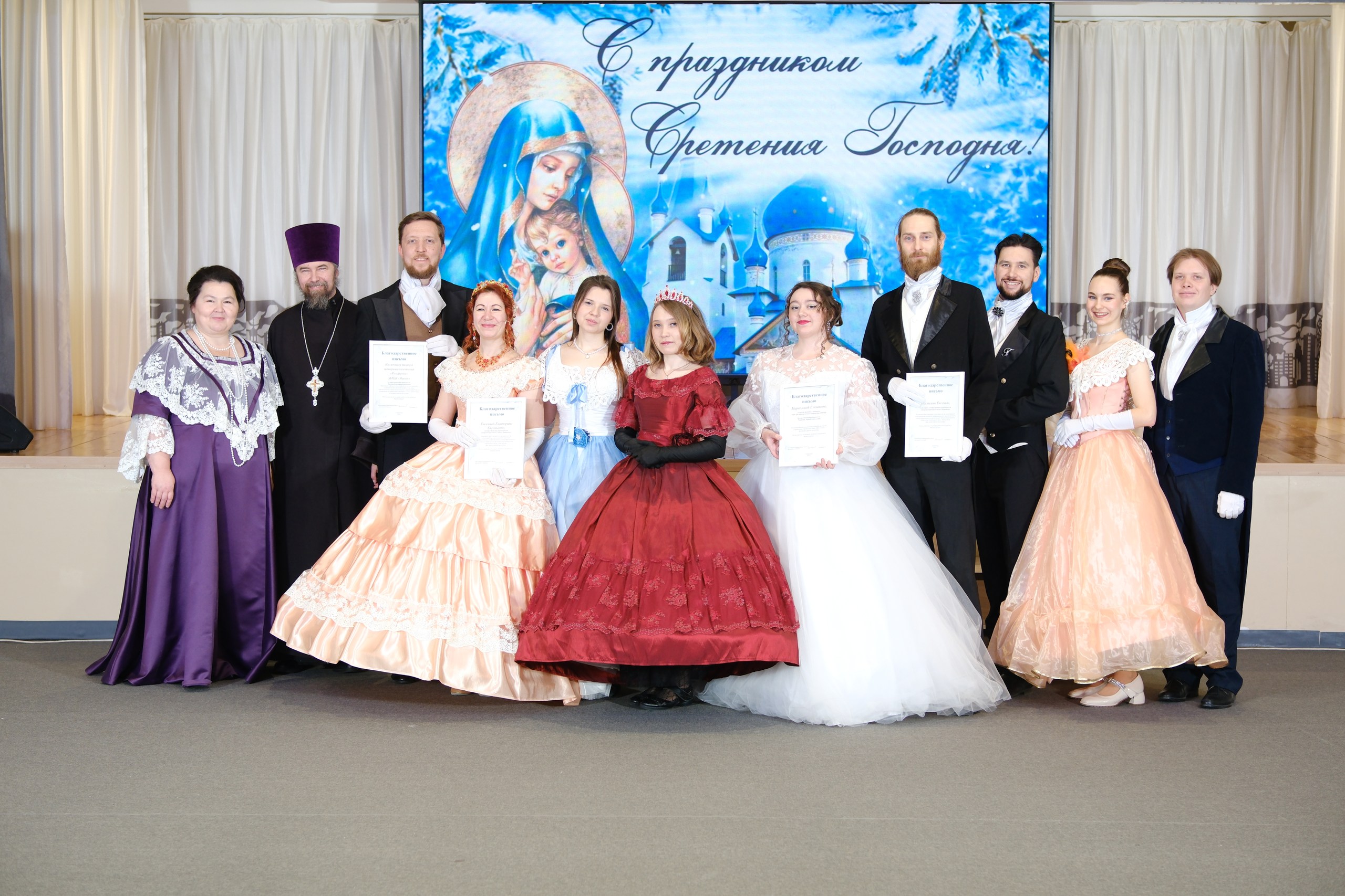 В день Сретения Господня и православной молодежи в Нижнекамске состоялся долгожданный и традиционный бал. В нем приняли участие воспитанники кадетского корпуса, клуба «Ялкын», ученики школ №36, 37, 14 и 8, студенты Казанского инновационного университета (КИУ) и Политехнического колледжа, а также воспитанники воскресной школы «Воскресение».