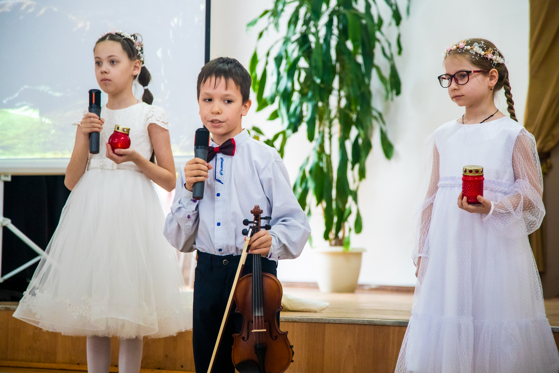 «Сегодня заканчивается Светлая седмица, пролетевшая будто один прекрасный праздничный день. Но еще много дней мы будем праздновать Пасху, радуясь ее весенней красоте», – приветствовали гостей ведущие. Выражением этой радости стали стихи и музыкальные произведения, добрые слова поздравлений. Пасхальные песнопения на разных языках исполнил народный хор Свято-Никольского кафедрального собора. Тропарь Пасхи прозвучал на греческом, латинском, славянском, грузинском и даже на арабском.