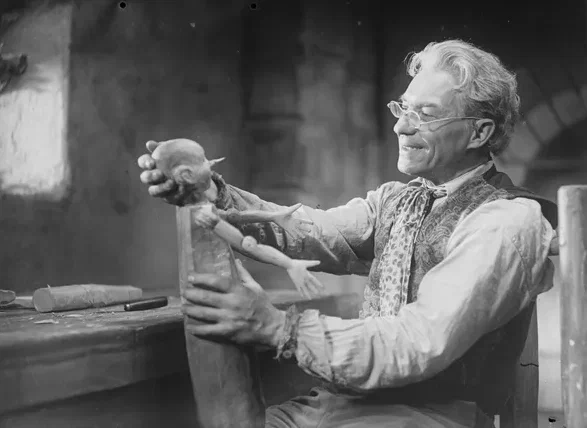 Итак, версия первая – фильм «Золотой ключик 1939 года. 1922 – 1953 годы – сталинская эпоха, отношение к которой самое разное и меняется оно до сих пор. Александр Птушко снимает фильм «Золотой ключик» – ключик от заветной дверцы, обладателем которого мог стать каждый житель новой страны. Птушко был совершенно необыкновенный мастер, он один из первых в нашей стране соединил актера и куклу.