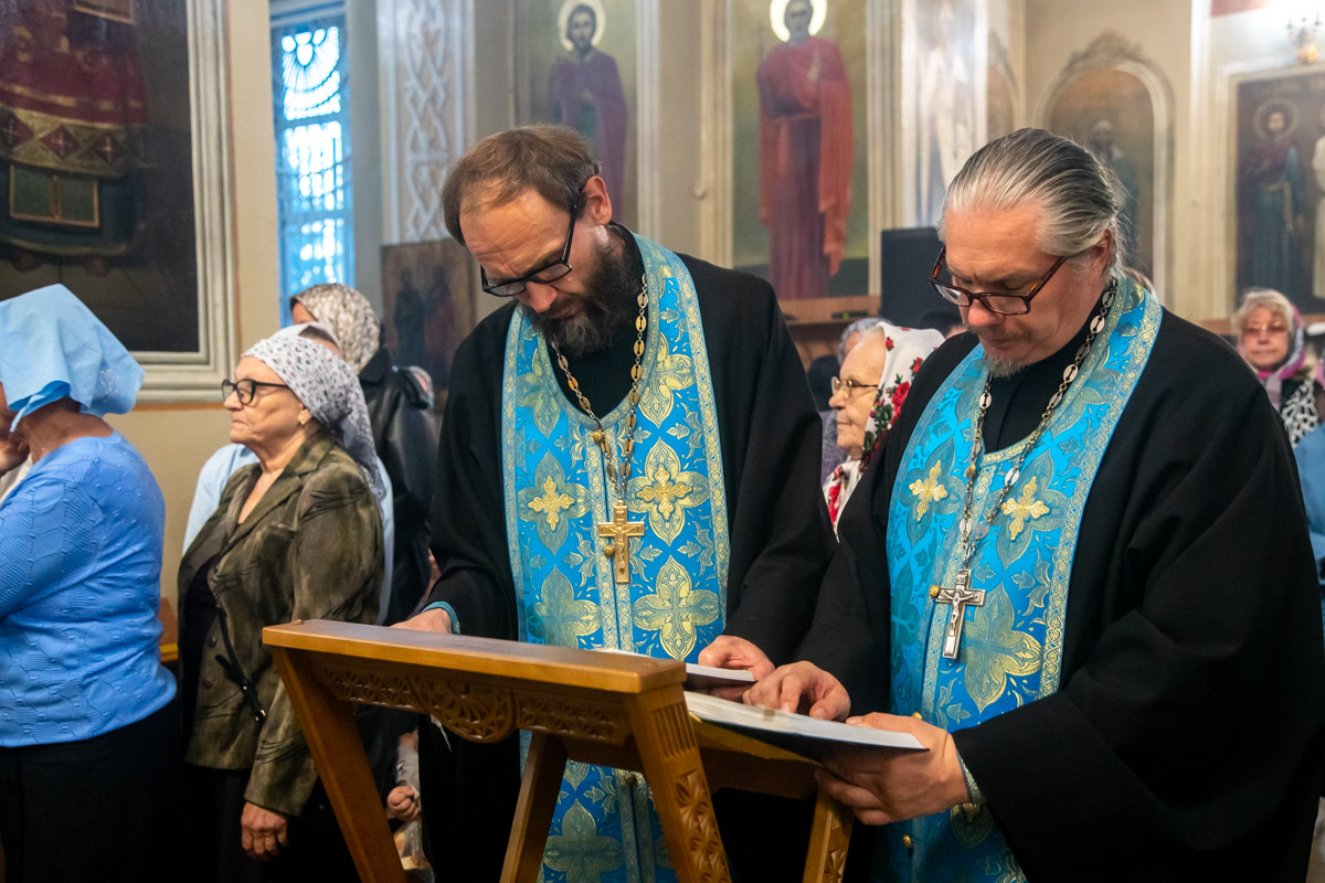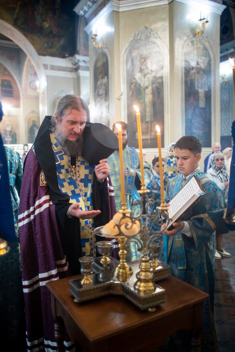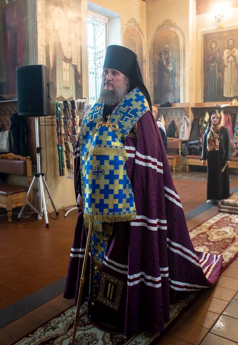 Его Преосвященству сослужили: ключарь собора иерей Виктор Тихонов, иерей Николай Андриевский, иерей Витали Гарабов, иерей Даниил Щербаков, иерей Павел Силайчев, иерей Валерий Гришанин, диакон Алексий Ведерников, диакон Иоанн Дунаев.