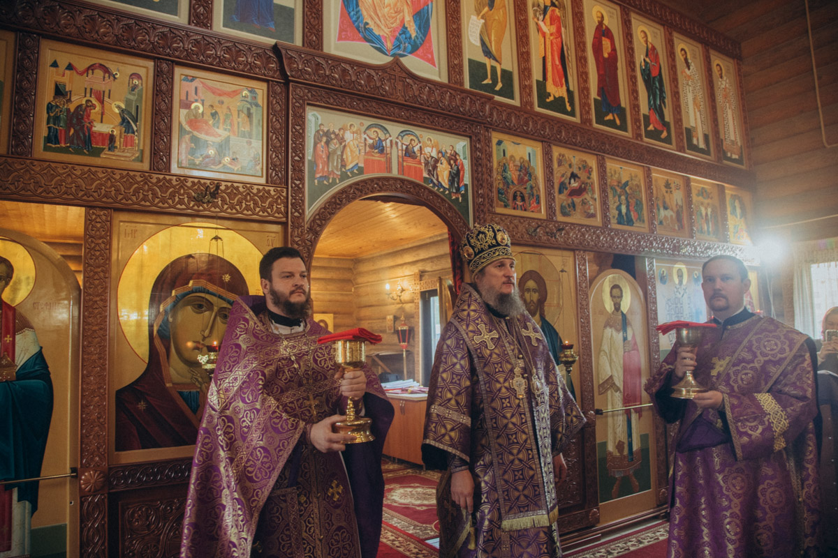 Его Преосвященству сослужили: иерей Виктор Тихонов, благочинный Чистопольского округа иерей Симеон Махортов, настоятель храма иерей Владислав Яковлев, иерей Валерий Гришанин, диакон Алексий Ведерников, диакон Димитрий Шувалов.