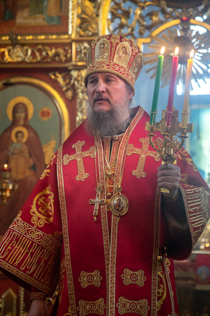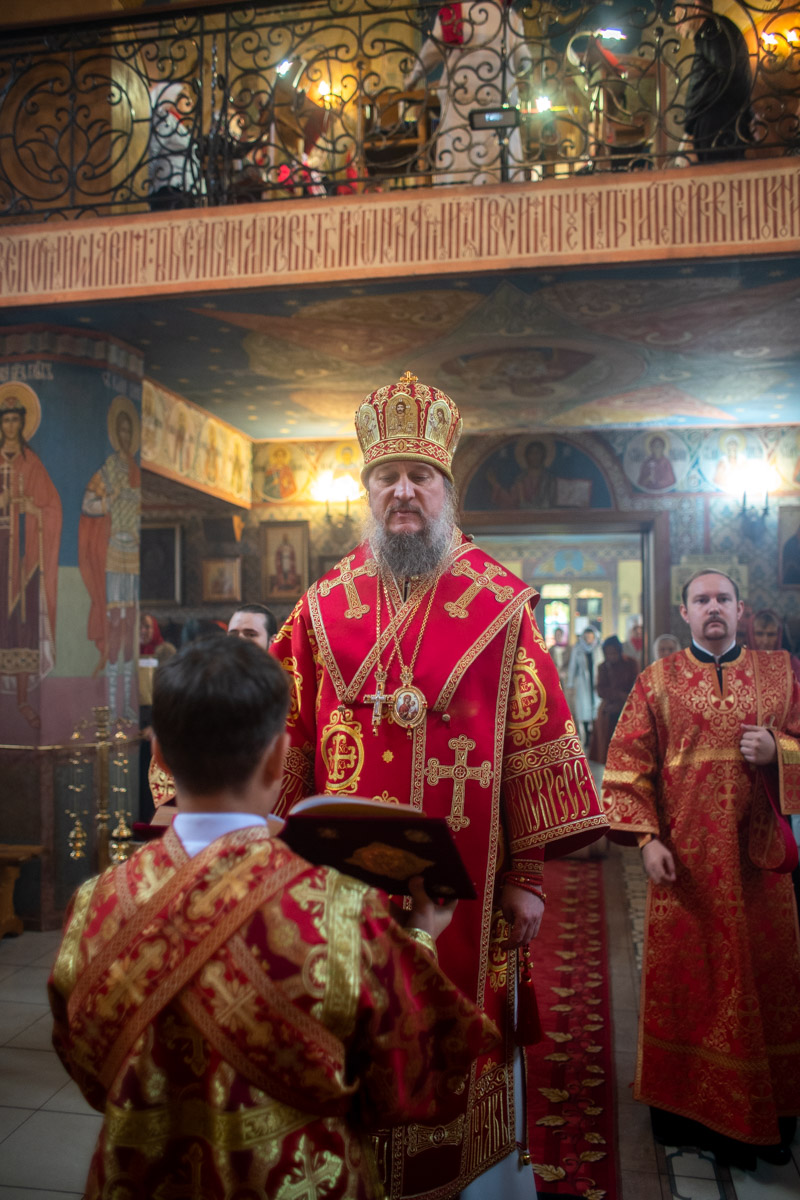 Его Преосвященству сослужили: секретарь епархиального управления иерей Виктор Тихонов, благочинный округа, настоятель храма протоиерей Павел Чурашов, протоиерей Илия Маташов, протоиерей Павел Андреев, протоиерей Анатолий Волков, иерей Димитрий Яковлев, иеродиакон Мефодий (Копьев), диакон Алексий Ведерников, диакон Георгий Самсонов.