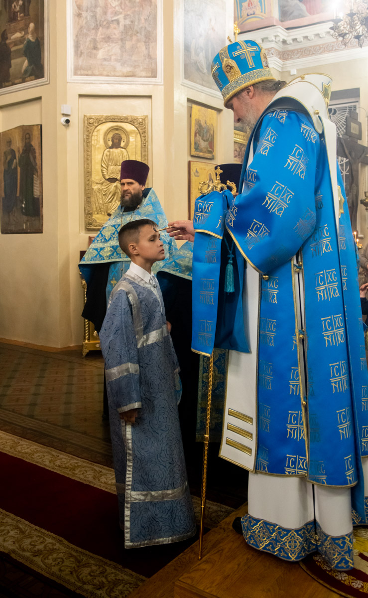 Его Преосвященству сослужили: ключарь собора иерей Виктор Тихонов, иерей Николай Андриевский, иерей Виталий Гарабов,  иерей Павел Силайчев, диакон Алексий Ведерников, диакон Иоанн Дунаев.