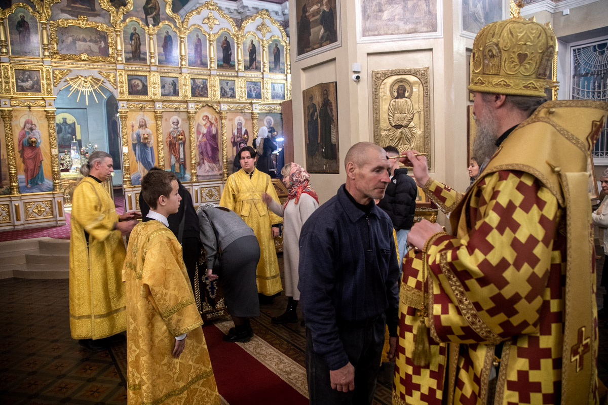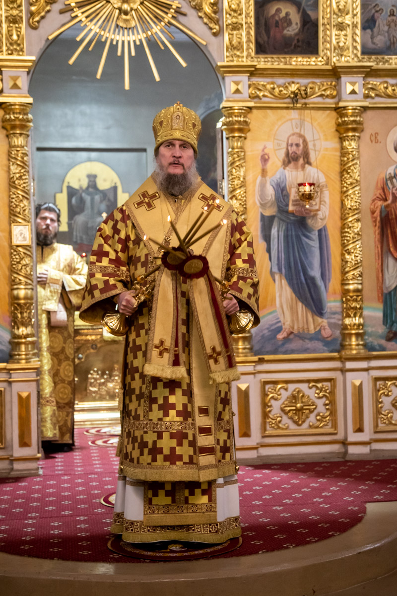 Его Преосвященству сослужили: ключарь собора иерей Виктор Тихонов, иерей Николай Андриевский, иерей Виталий Гарабов, иерей Даниил Щербаков, иерей Павел Силайчев,  диакон Алексий Ведерников.