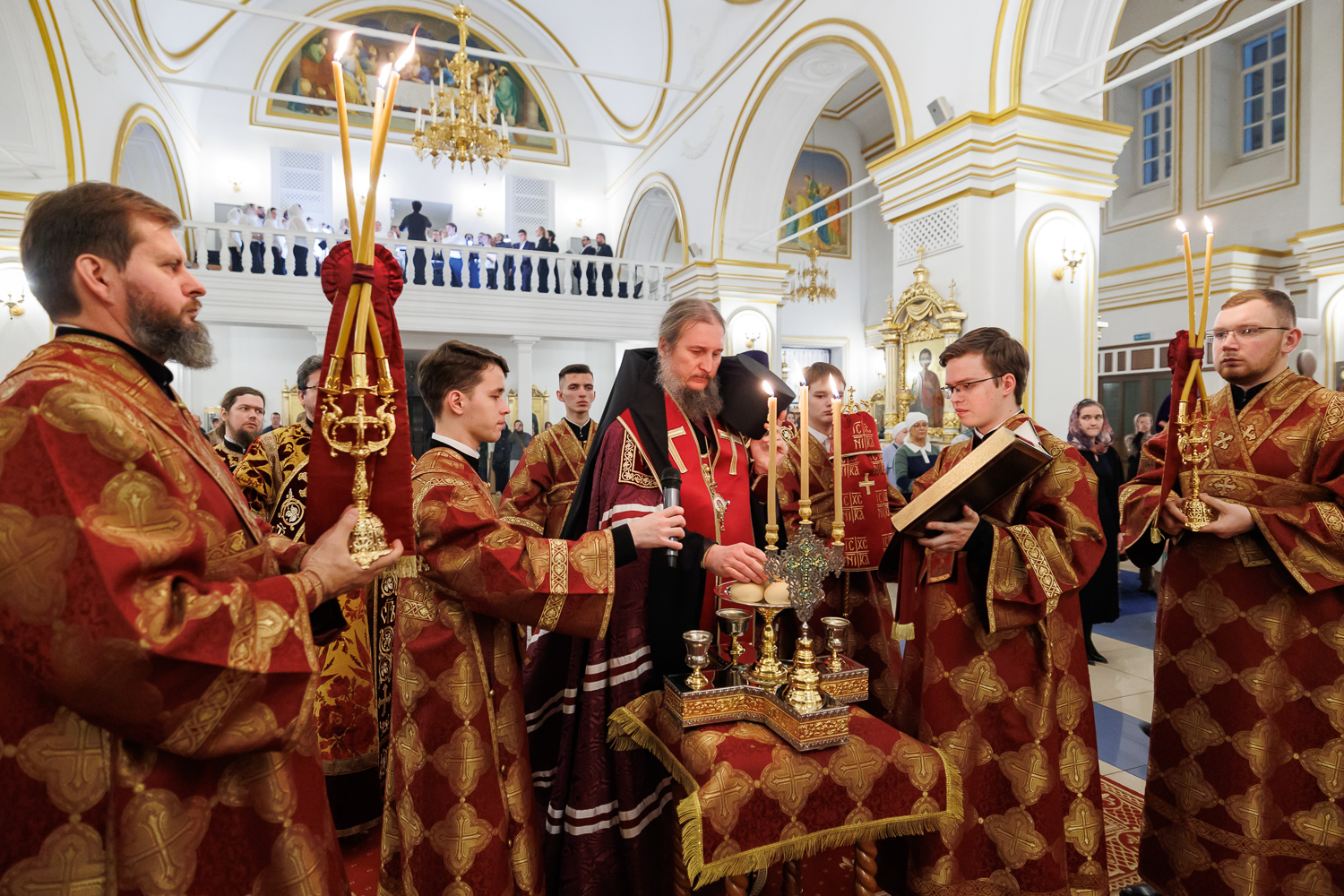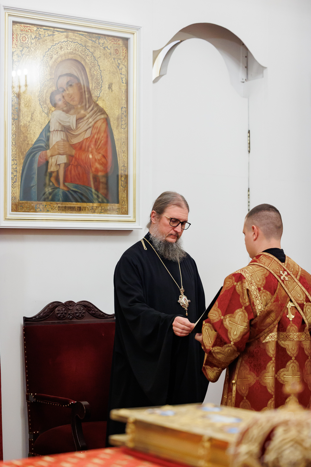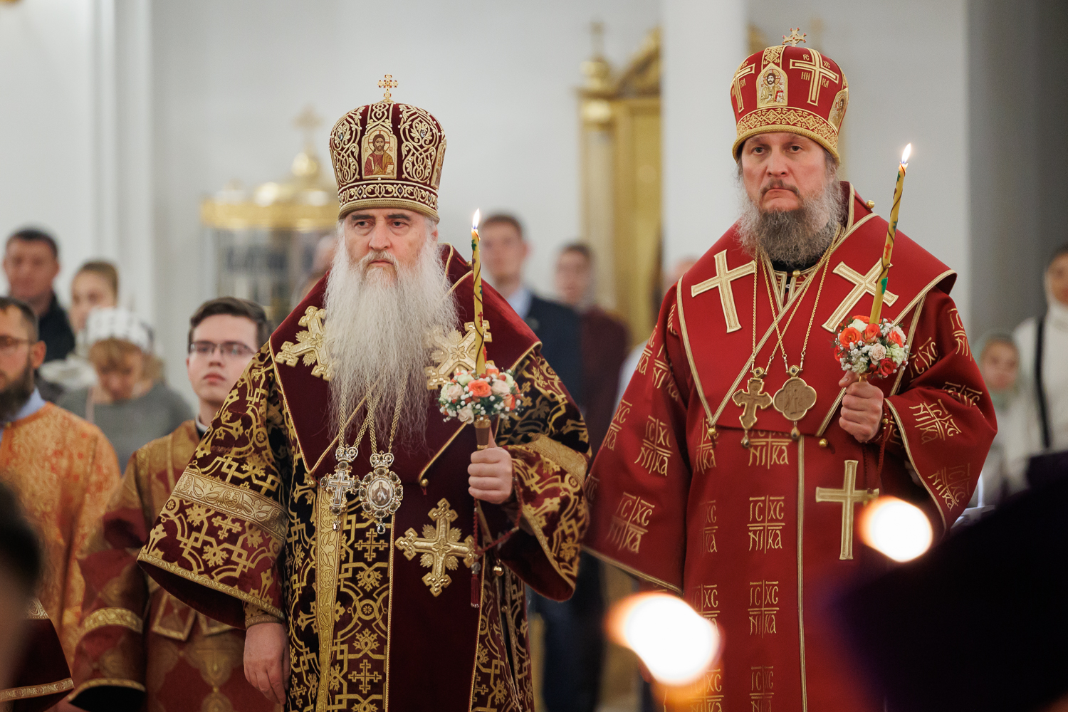 Архипастырям сослужили секретарь Симбирского епархиального управления иерей Роман Солодко, секретарь Чистопольской епархии иерей Виктор Тихонов, протоиерей Илия Кузнецов, протоиерей Владимир Быков, протоиерей Сергий Ефремов, протоиерей Олег Кропочев, иерей Даниил Гасников, протоиерей Николай Архангельский, иеромонах Георгий (Карпов), иерей Андрей Козлов, иерей Николай Генсицкий, иерей Владимир Маняков, иеромонах Иларион (Хроль), иерей Феодор Троицкий, иерей Вадим Муругов, иерей Арсений Розин, иерей Георгий Джмиль, протоиерей Святослав Пармакли, протоиерей Святослав Еренков, протоиерей Павел Путилкин, иерей Никита Галныкин, иеромонах Антоний (Зажеко), иерей Никита Рыбаков, иерей Михаил Лазарев, протодиакон Николай Платонов, диакон Иоанн Косяков, диакон Григорий Шевченко, диакон Александр Миронов, диакон Алексей Ведерников.