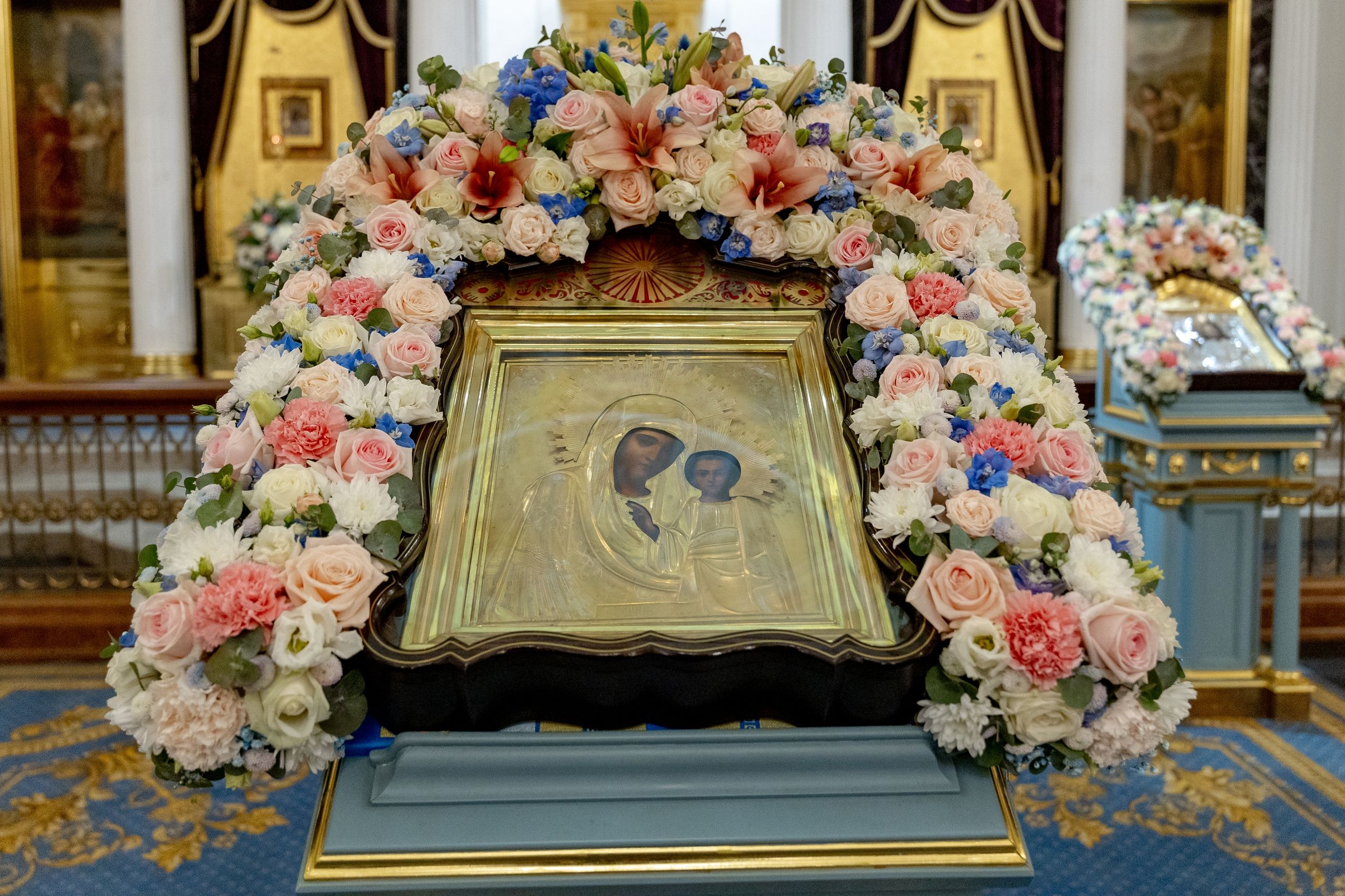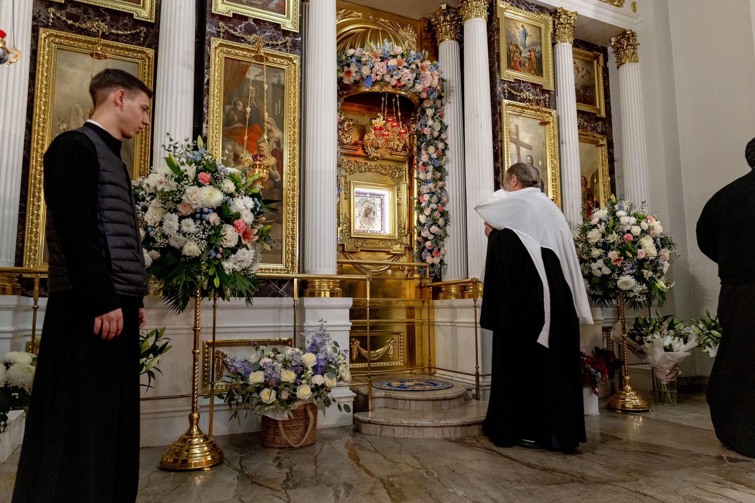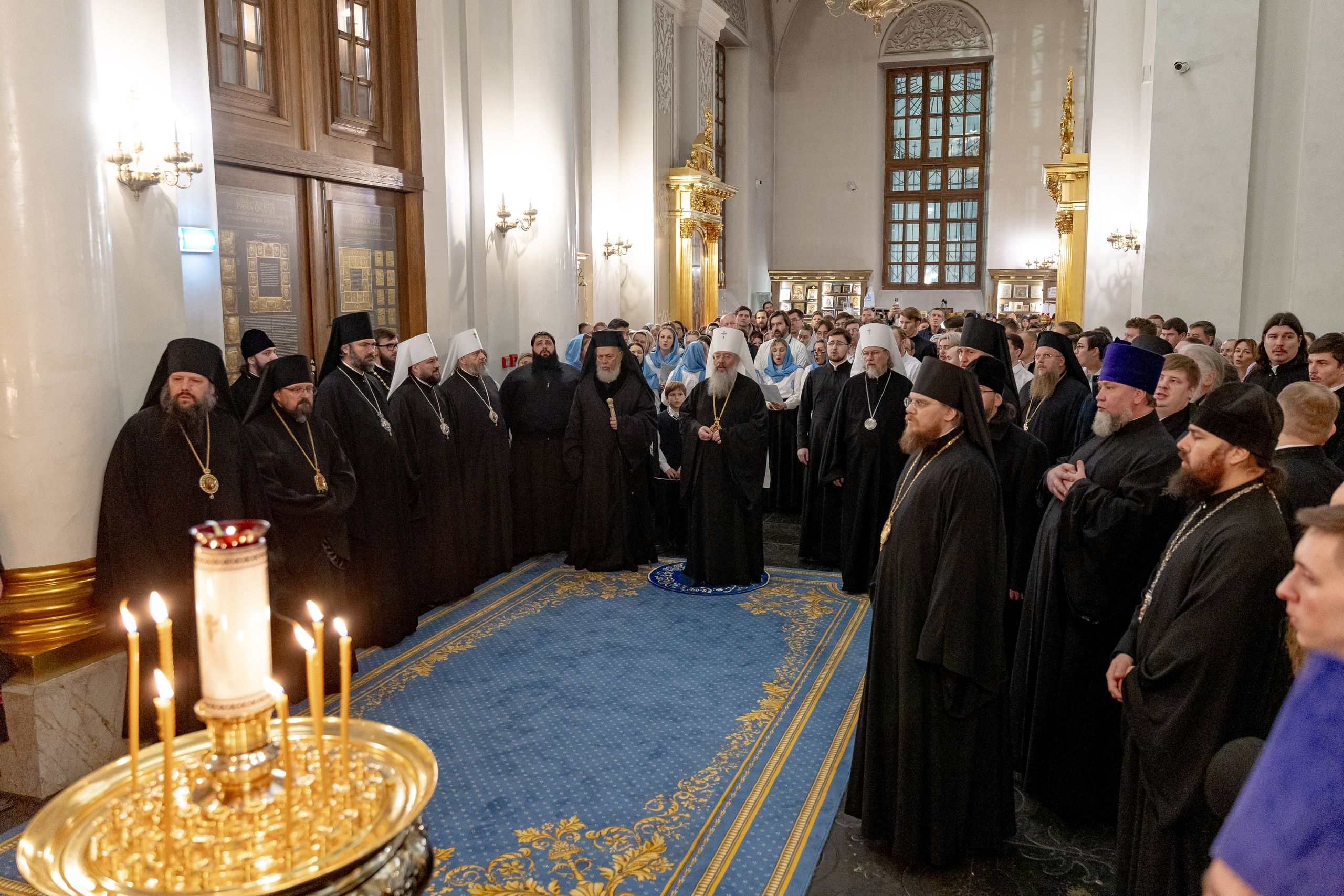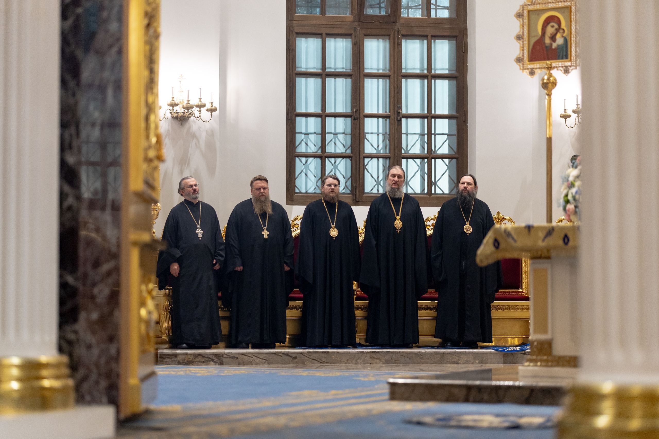 За полиелеем архипастыри и духовенство пропели акафист Пресвятой Богородице перед Её чтимым образом в правом приделе собора. В завершение богослужения духовенство совершило славление Царице Небесной.