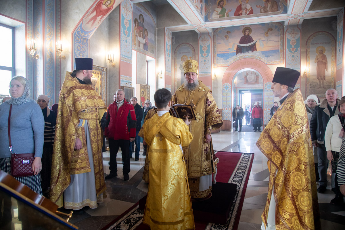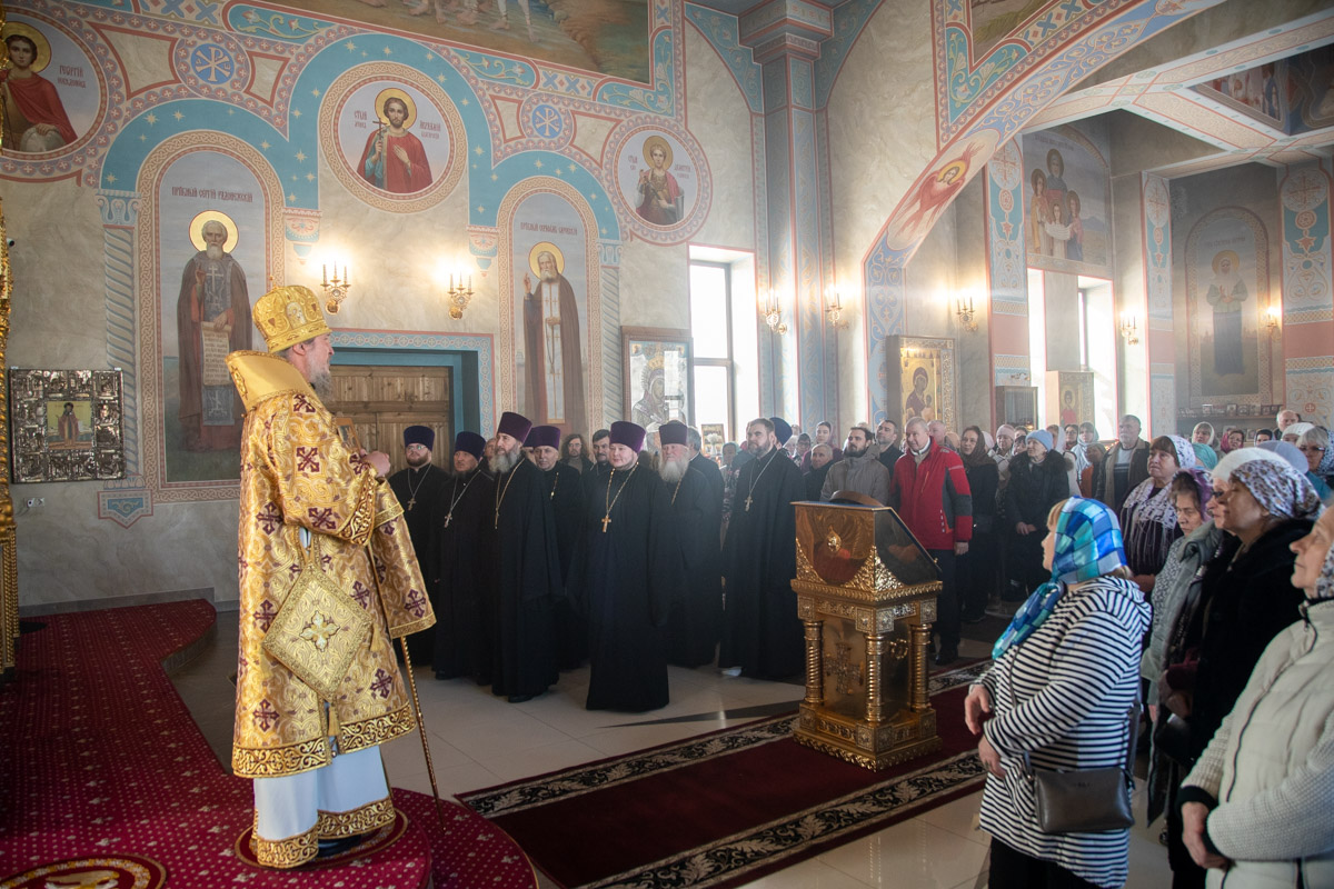 22 февраля, в Неделю сыропустную, воспоминание Адамова изгнания, обретение мощей святителя Тихона, Патриарха Московского и всея Руси, епископ Чистопольский и Нижнекамский Пахомий совершил Литургию в храме Рождества Христова г. Нижнекамска.