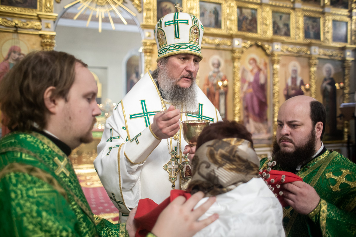 5 апреля, в праздник Входа Господня в Иерусалим, епископ Чистопольский и Нижнекамский Пахомий совершил Литургию в Свято-Никольском кафедральном соборе г. Чистополя.