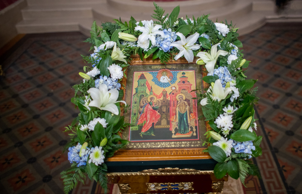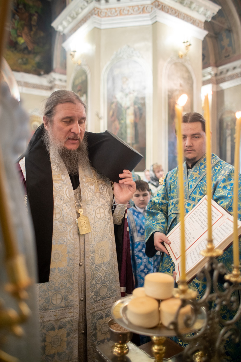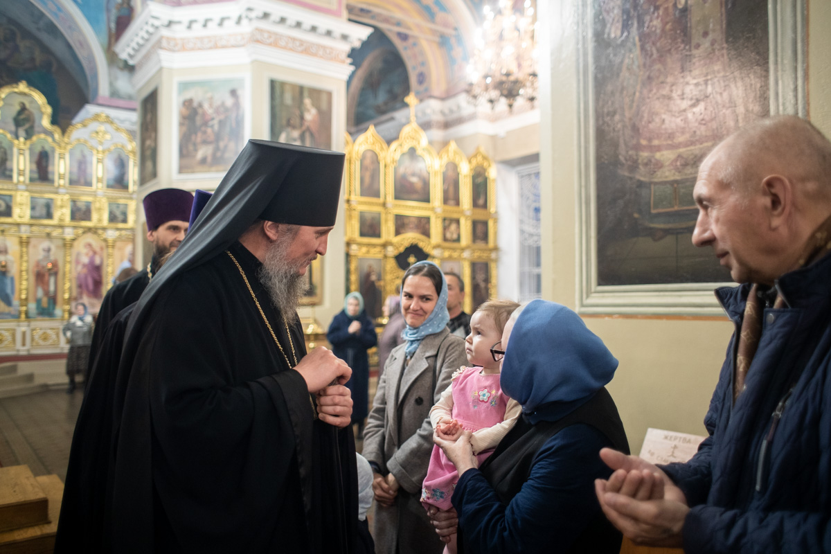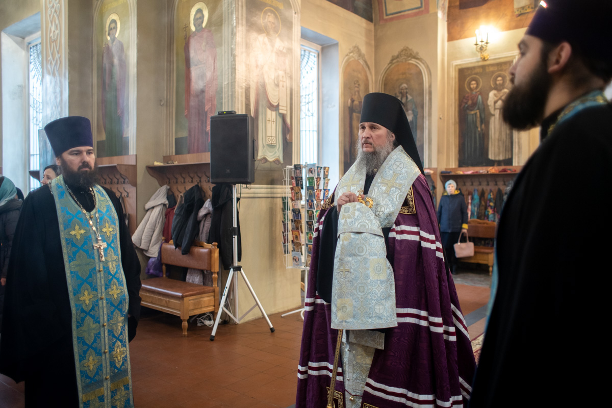 Его Преосвященству сослужили: ключарь собора священник Виктор Тихонов, иерей Николай Андриевский, иерей Виталий Гарабов, иерей Даниил Щербаков, иерей Павел Силайчев, диакон Алексий Ведерников, диакон Иоанн Дунаев.