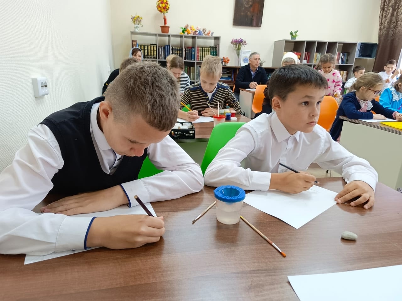 Затем под руководством мастера все участники встречи рисовали рисунки, объединенные общей темой «Красота Божьего мира».