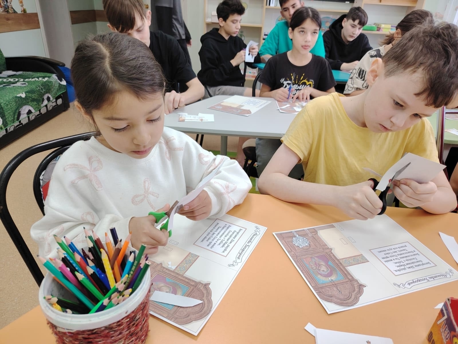 Занятие продолжилось мастер-классом, во время которого изготовили тематические открытки, а также разобрали смысл слов молитвы Пресвятой Богородице.