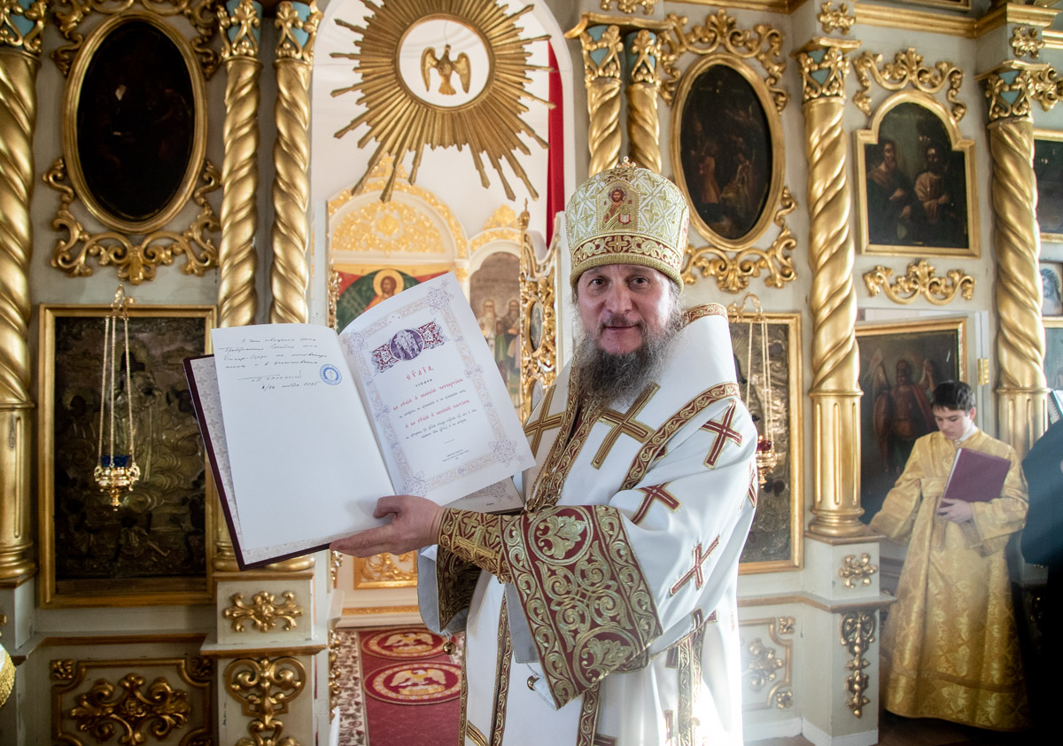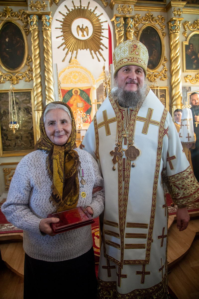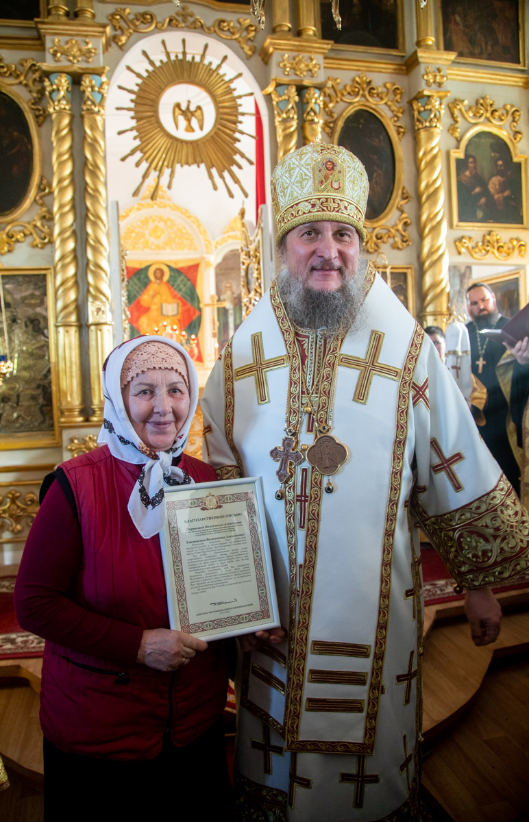 В этот день владыка вручает награды и настоятелю храма иерею Сергию Егорову, и его добрым помощникам. . Храму он дарит Евангелие, которое будет напоминать об этом замечательном дне.
