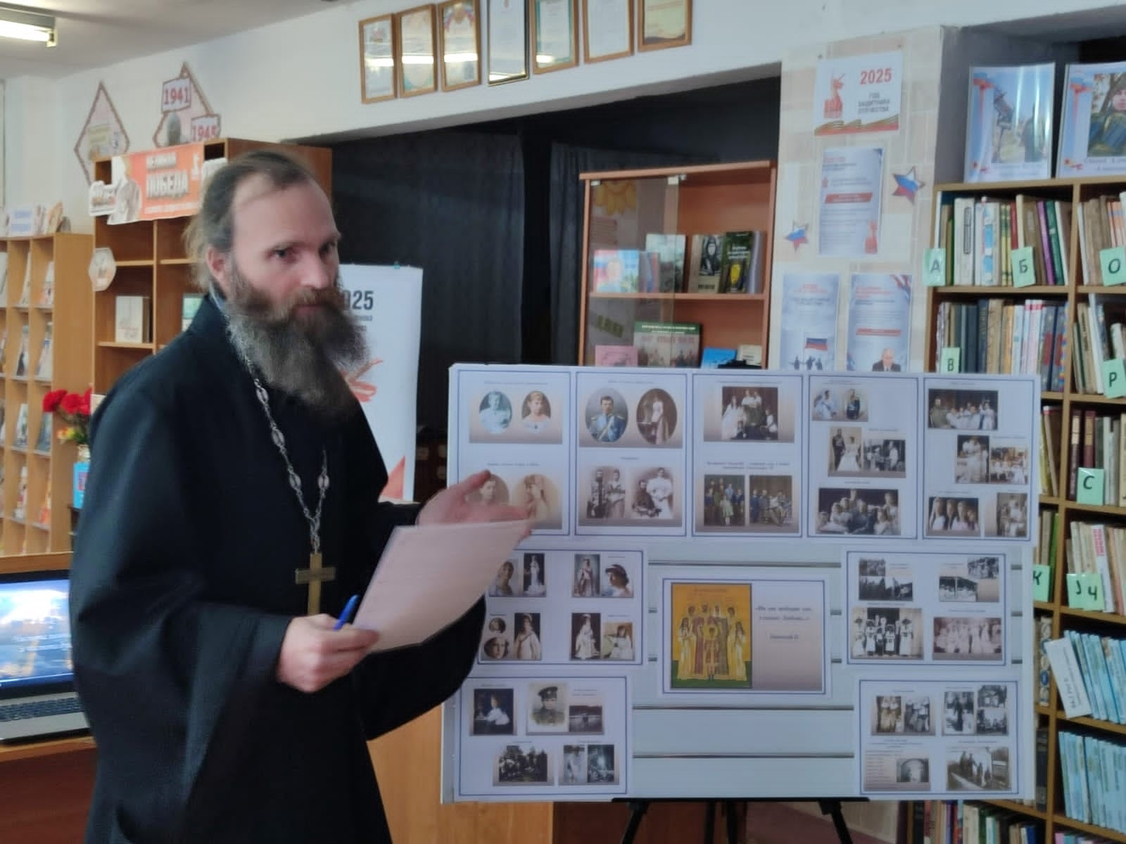 Встреча с библиотекарями, педагогами и учениками, которая состоялась 15 декабря, посвящена жизни и традициям семьи царственных страстотерпцев. Ее в сельской библиотеке провел настоятель молитвенного дома преподобного Серафима Саровского с. Старое Тимошкино иерей Александр Пасичук.