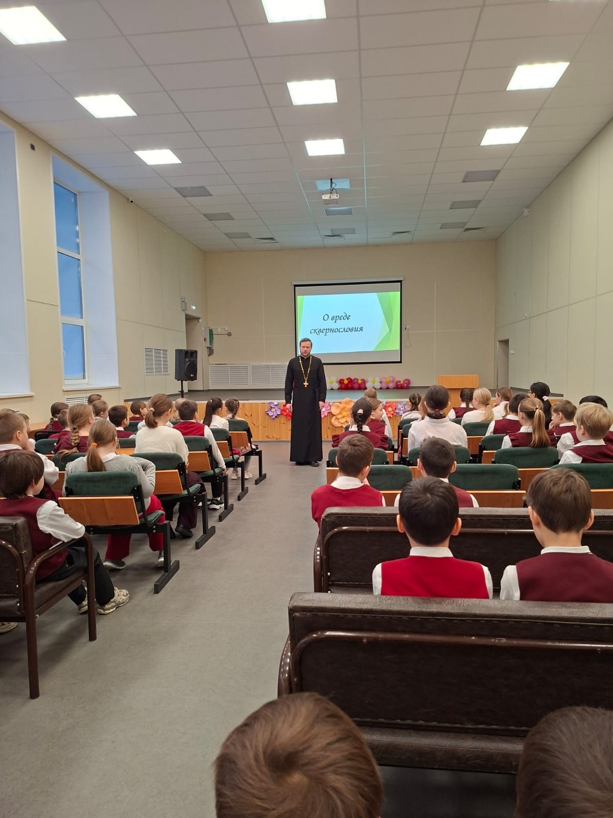 15 декабря в актовом зале средней школы N 16 г. Чистополя прошла встреча с руководителем епархиального миссионерского отдела иереем Александром Новицким. Отец Александр поговорил с учениками четвёртых классов о вреде сквернословия.