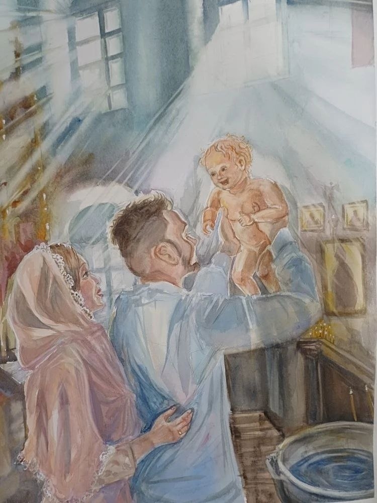 В номинации «Основная тематика», вторая возрастная группа (13–17 лет), 2-е место заняла Варвара Бокарева (13 лет), Чистопольская епархия, п. Аксубаево, с работой «Крещение».