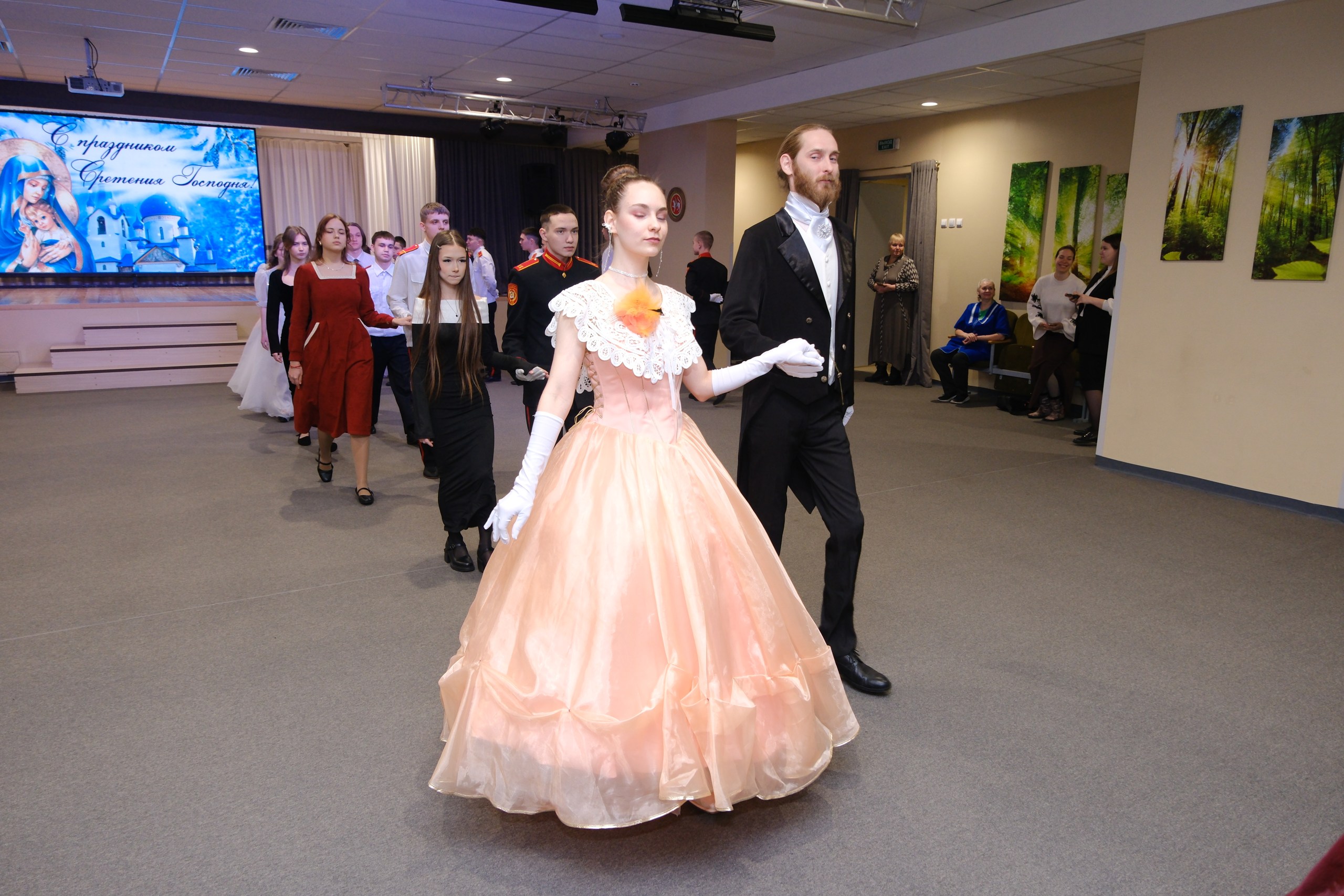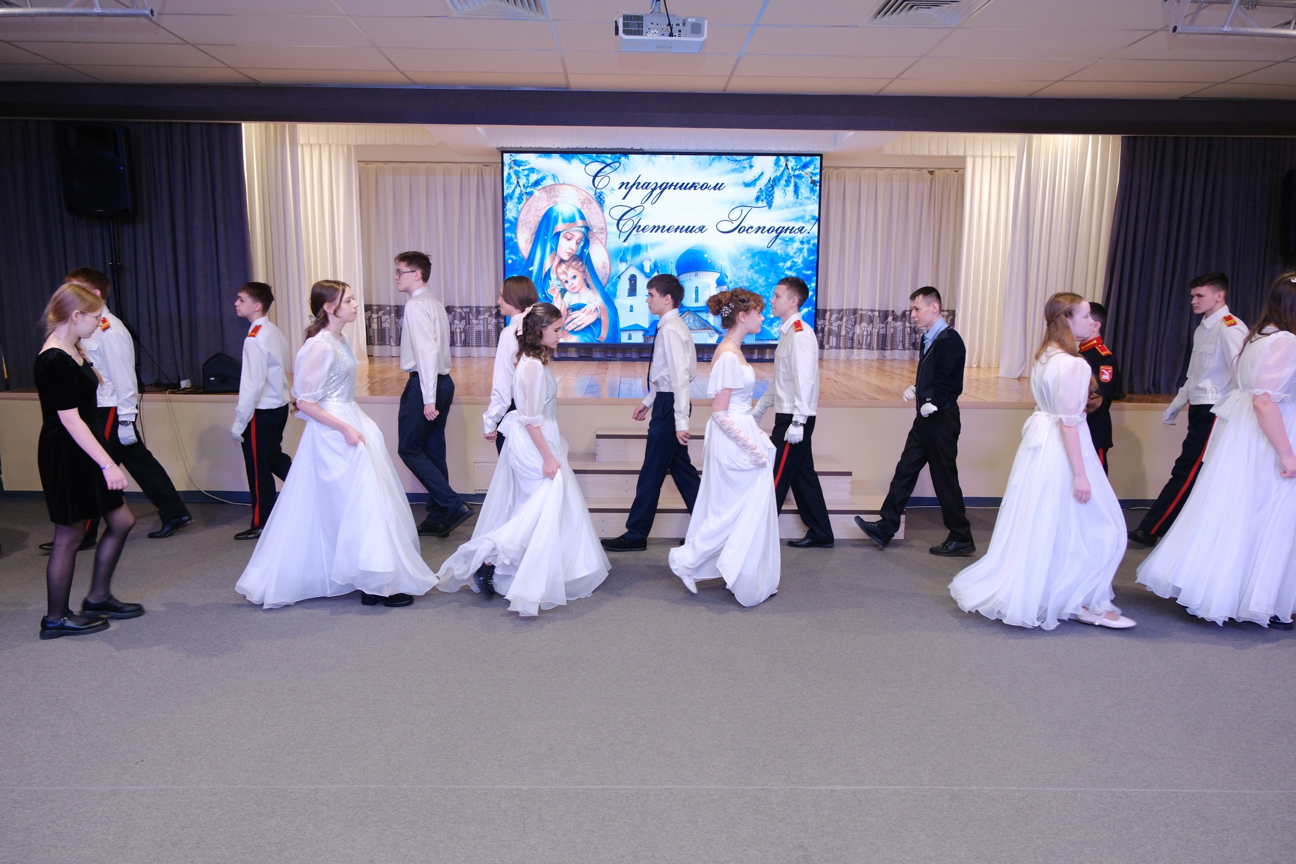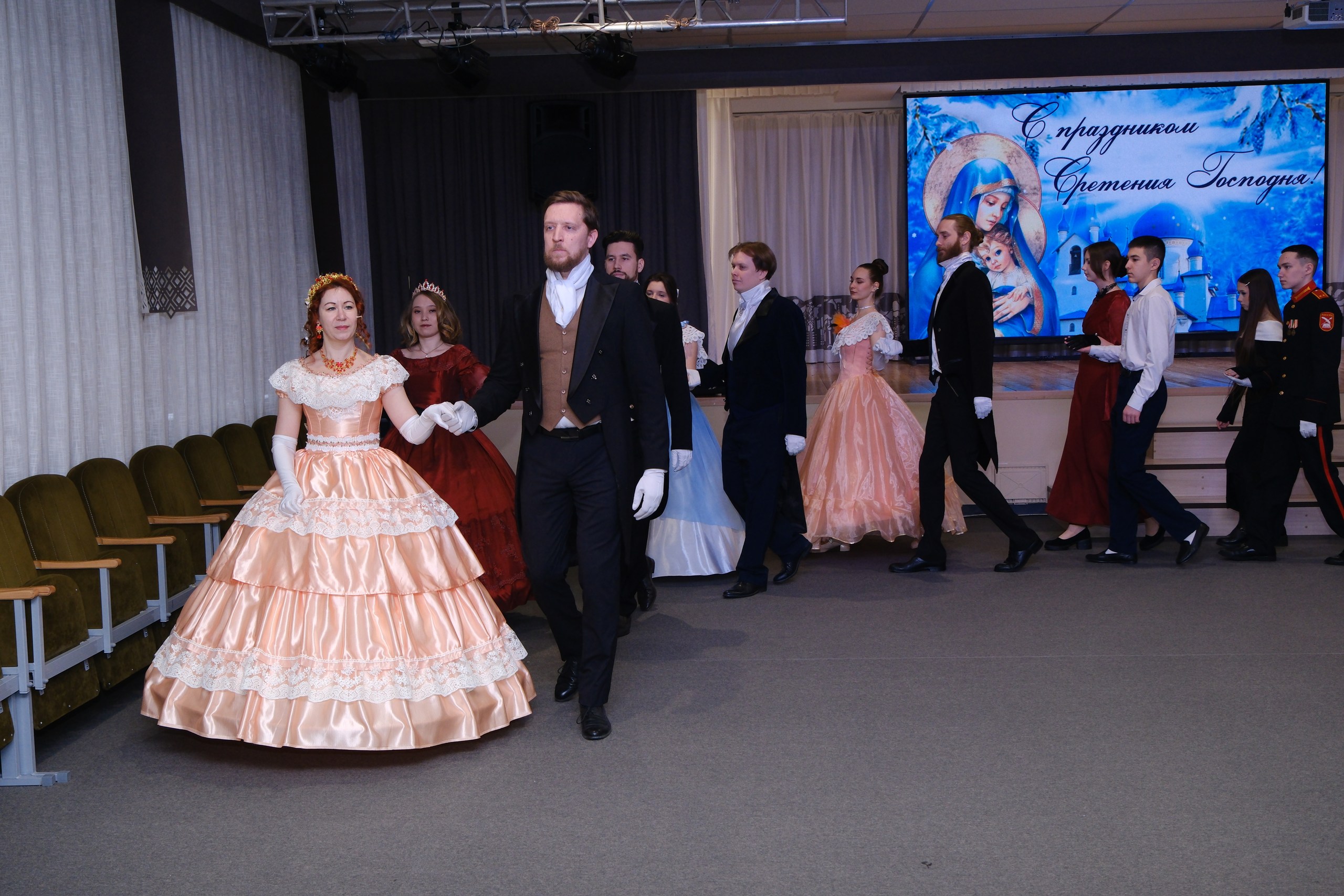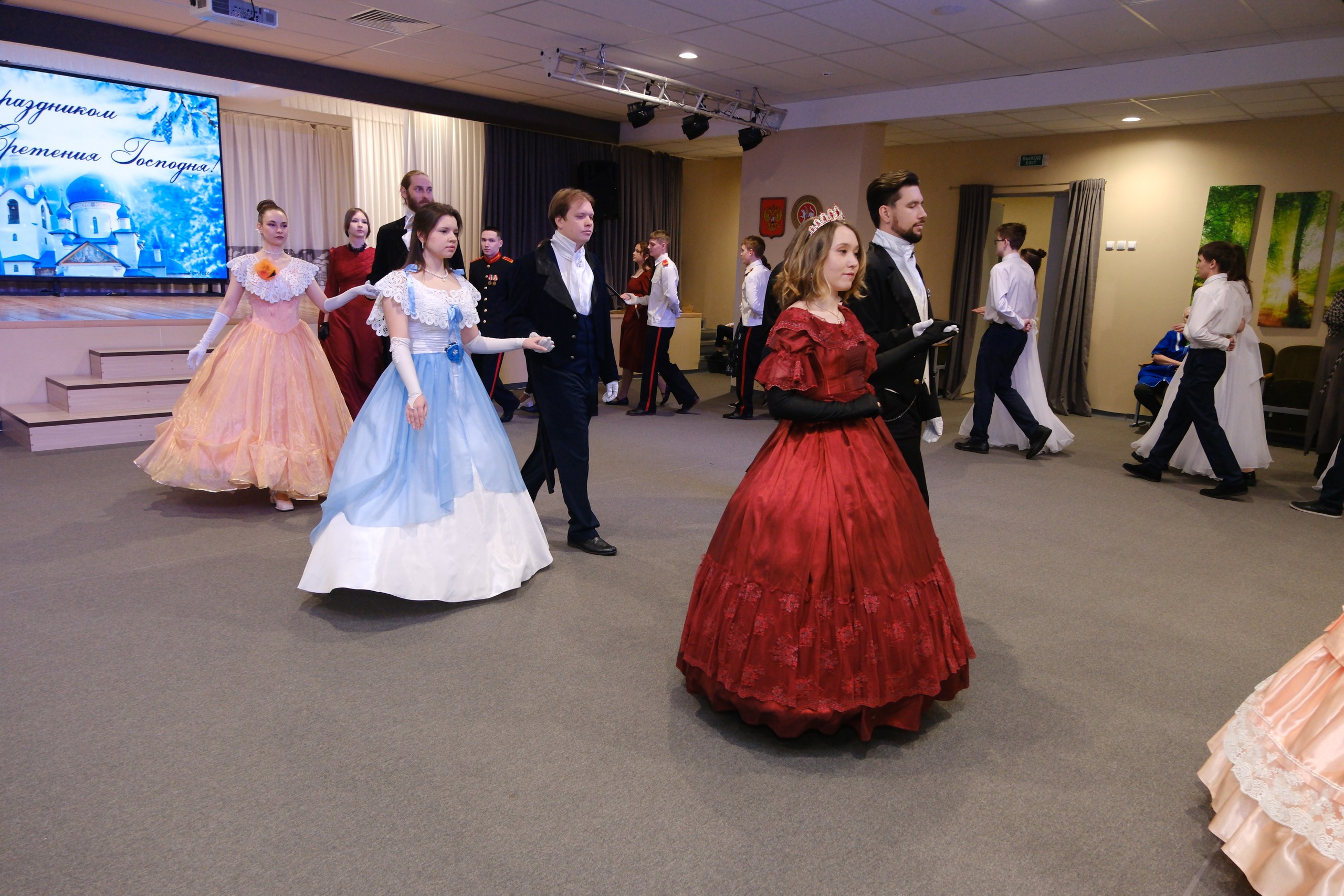 В день Сретения Господня и православной молодежи в Нижнекамске состоялся долгожданный и традиционный бал. В нем приняли участие воспитанники кадетского корпуса, клуба «Ялкын», ученики школ №36, 37, 14 и 8, студенты Казанского инновационного университета (КИУ) и Политехнического колледжа, а также воспитанники воскресной школы «Воскресение».