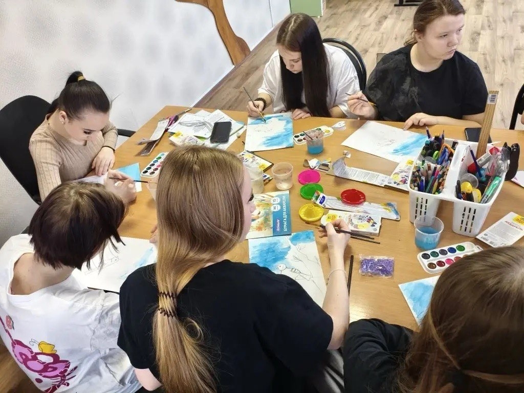 Затем для ребят педагоги провели творческий мастер-класс. Дети нарисовали птиц на ветках деревьев, чтобы передать весеннее настроение.