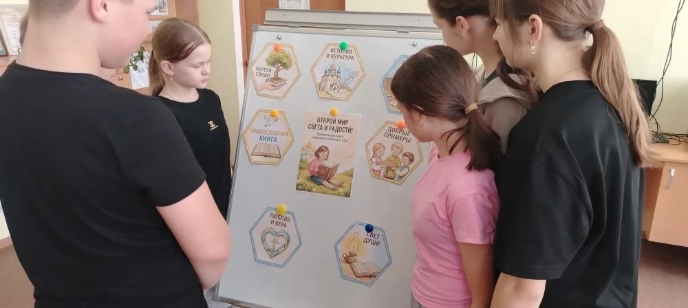 В библиотеке действует выставка "Живое слово мудрости духовной". Здесь представлены книги по истории православия, произведения современных авторов, книги для семейного чтения.