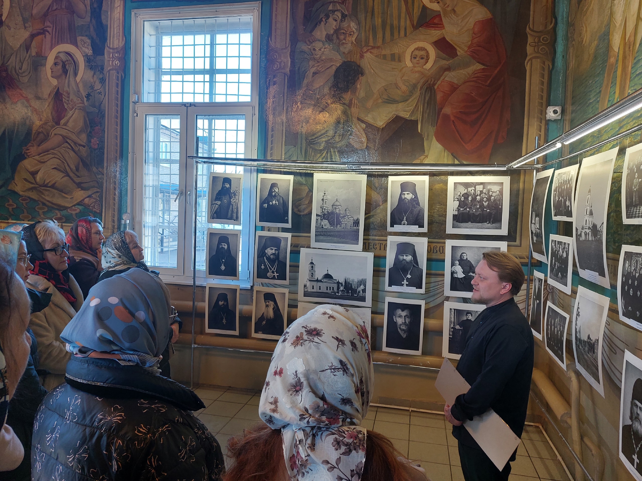 Заинтересовала паломниц и выставка «Вечная память» в Казанском храме. «Мне очень хотелось понять: как потомки тех, кто строил храмы стали их разрушать. И каким нужно быть человеком, чтобы иметь мужество пострадать за Христа», – поделился один из создателей выставки Виктор Данилов. Он провел подробную экскурсию для гостей, рассказал о пастырях, служивших в нашем городе, о разрушенных храмах. Цель выставки – не только сохранить память о давно прошедшем, но и воспитать желание бережно хранить историю и в дальнейшем.