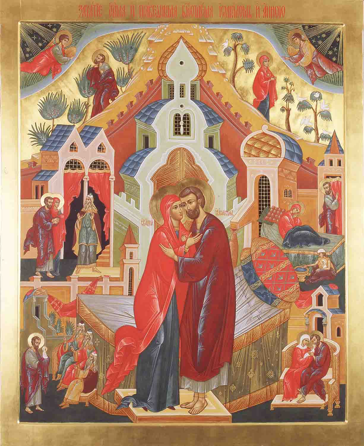 Он не изображает какого-то буйного веселия, резких движений. Но сколько в этой сцене искренней, глубокой любви, взаимной нежности, заботы и сострадания. Это урок всем нам – истинная радость не должна быть ни чрезмерной, ни показной. Зачатие святой праведной Анной Пресвятой Богородицы Церковь отмечает 22 декабря. А 21 сентября мы празднуем рождение долгожданной Дочери, которую праведные супруги назвали Мария, что в переводе на русский означает госпожа.