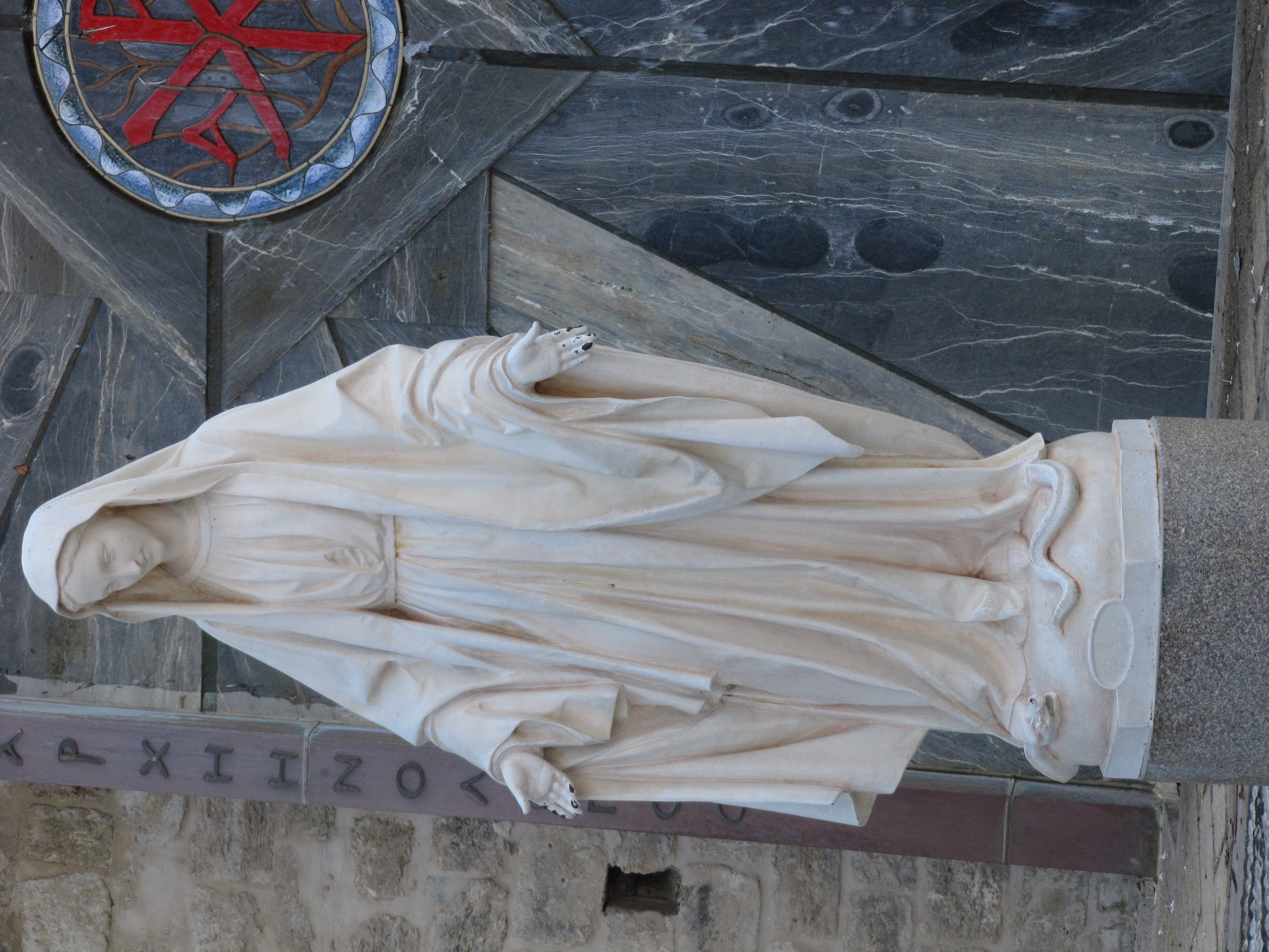 Во дворе храма – скульптура Девы Марии, у Нее под ногами змея.
